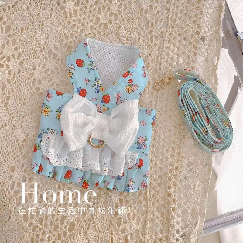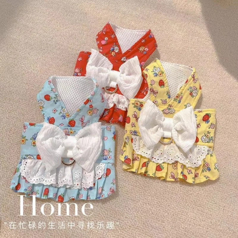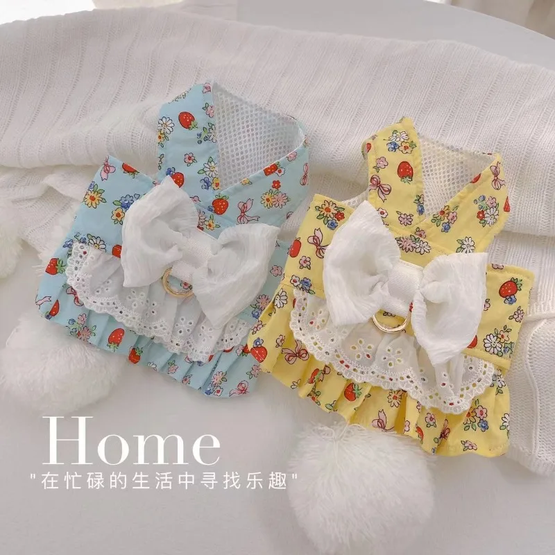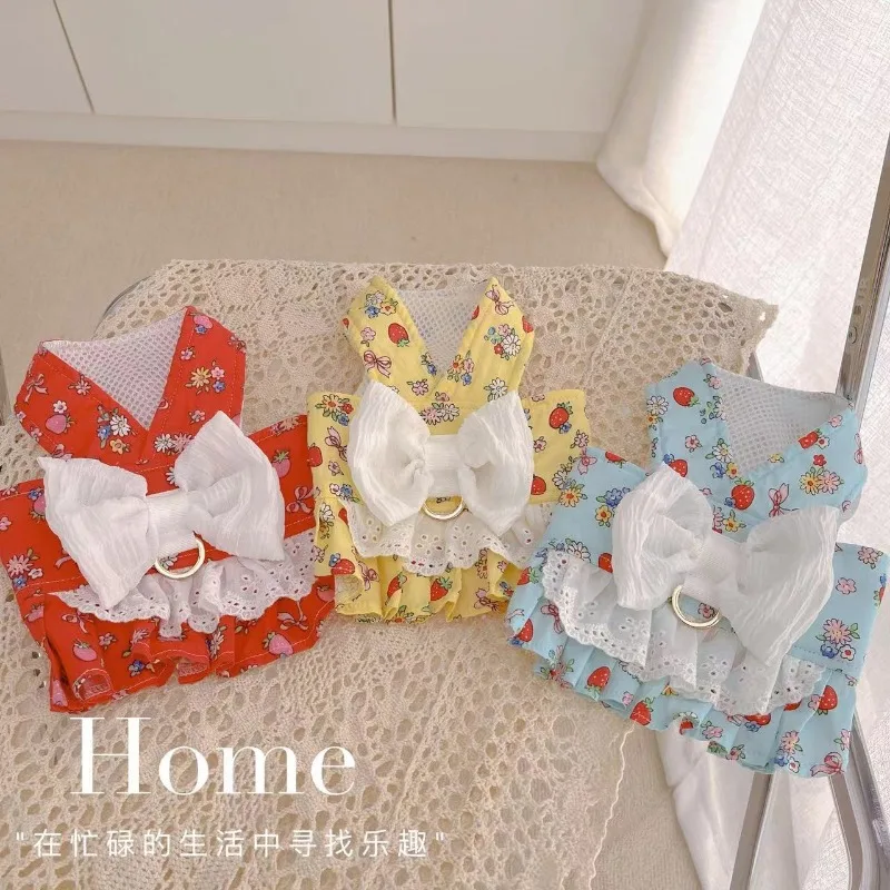 Ropa con lazo grande para mascotas, arnés de colores, ropa con flores para perros y gatos, camiseta sin mangas, estilo de tracción, osos de peluche y perros pequeños, ropa para salir