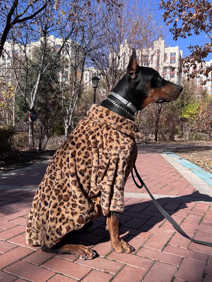 Ropa de leopardo de lujo para perros grandes, abrigo cálido de lana para perro, chaqueta Doberman a la moda para perros pequeños, ropa para perro grande