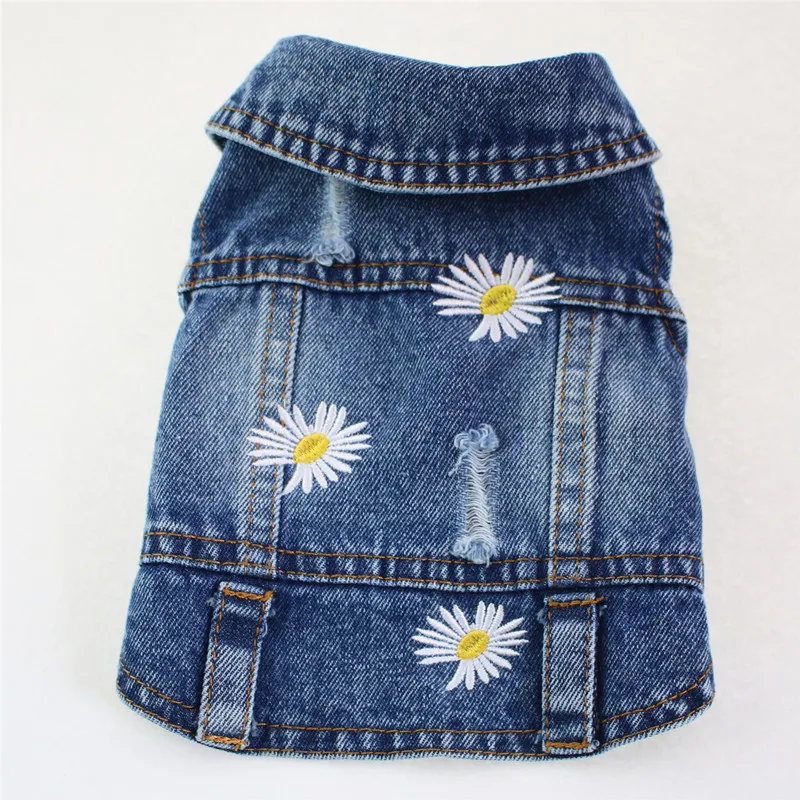 Ropa de lujo para perros con bordado de margaritas para perros pequeños y medianos, camisa azul para perros, chaqueta vaquera informal para mascotas, chaqueta para cachorros sin mangas, abrigo vaquero lavado Vintage, ropa para gatos