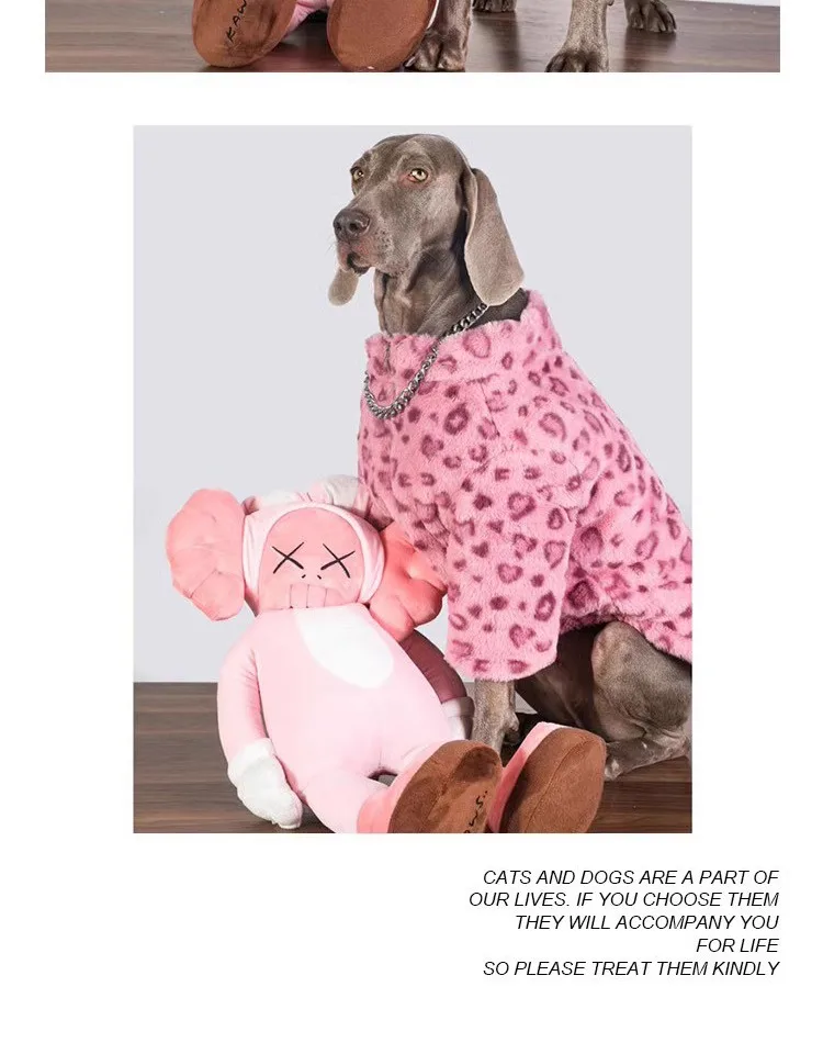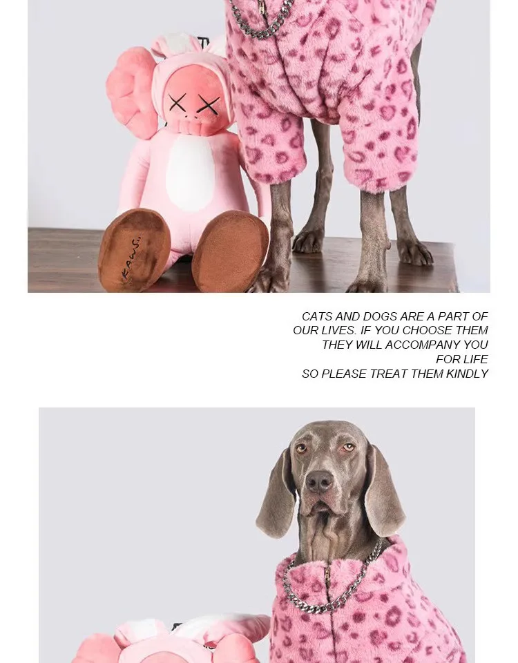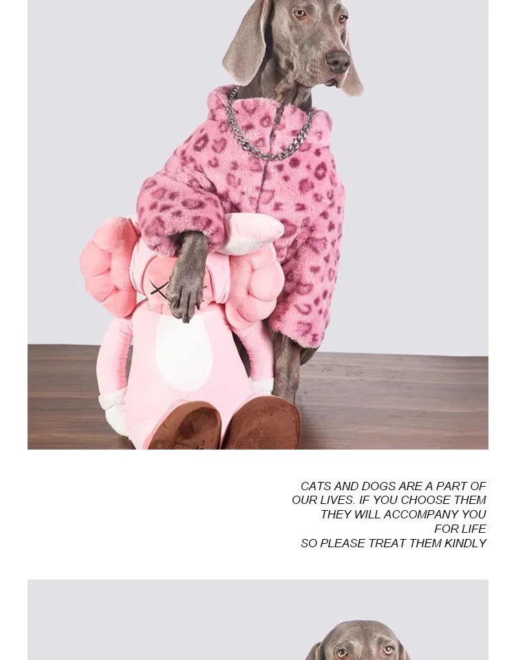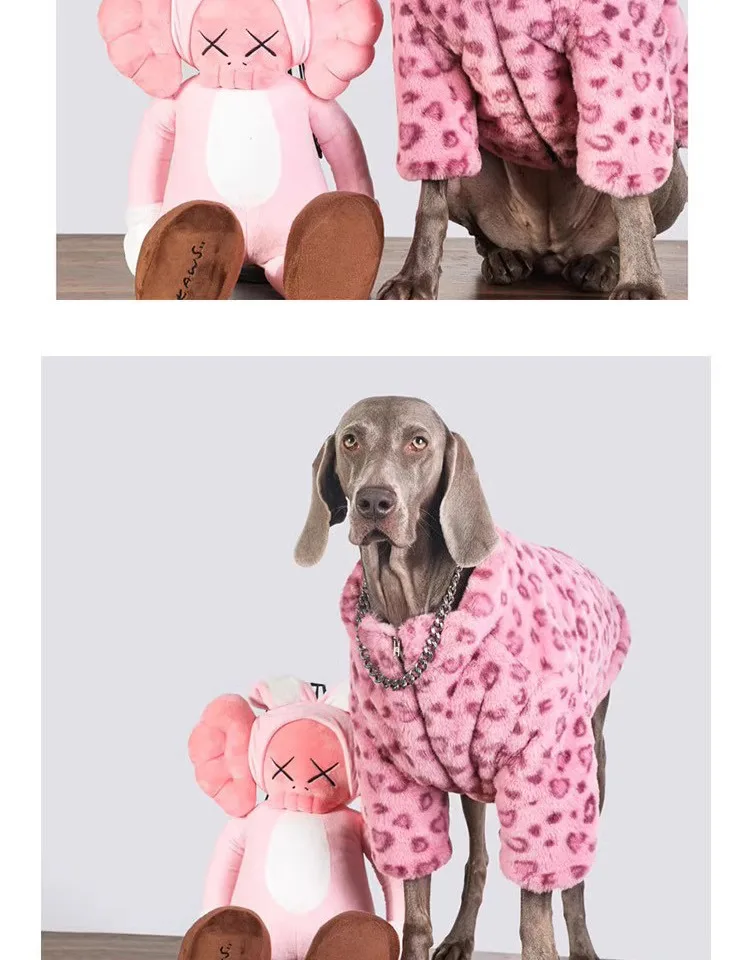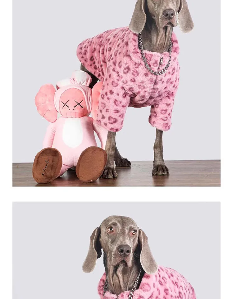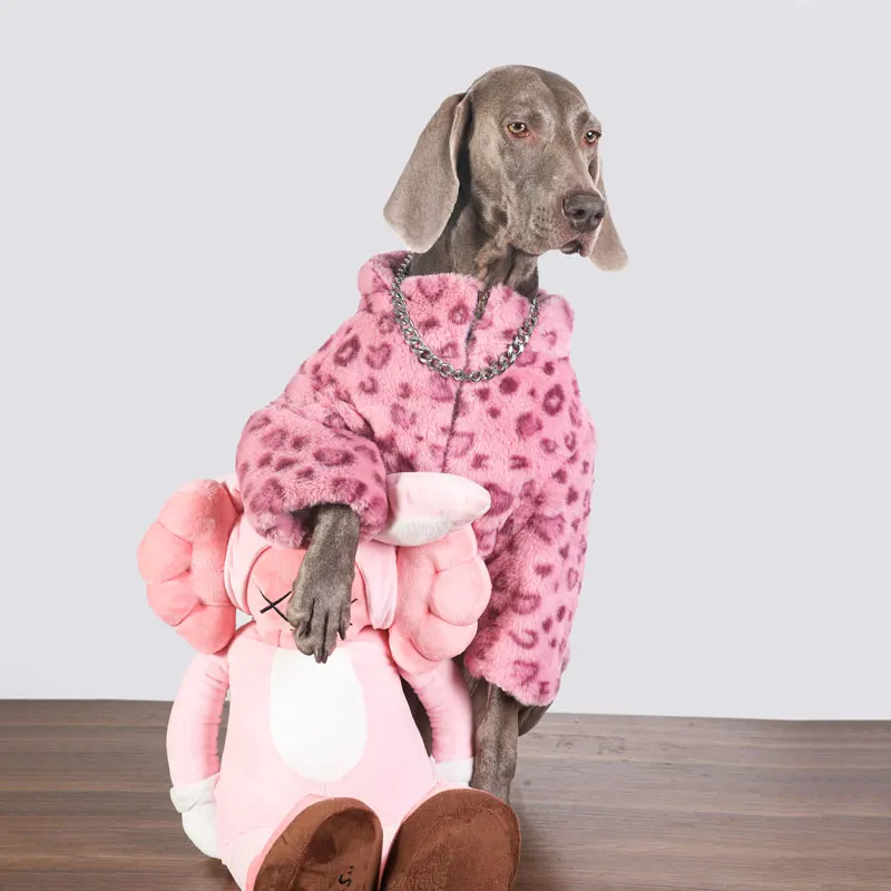 Ropa de lujo para perros de leopardo rosa para perros medianos grandes, moda Golden Retriever Labrador, ropa de lana cálida en invierno
