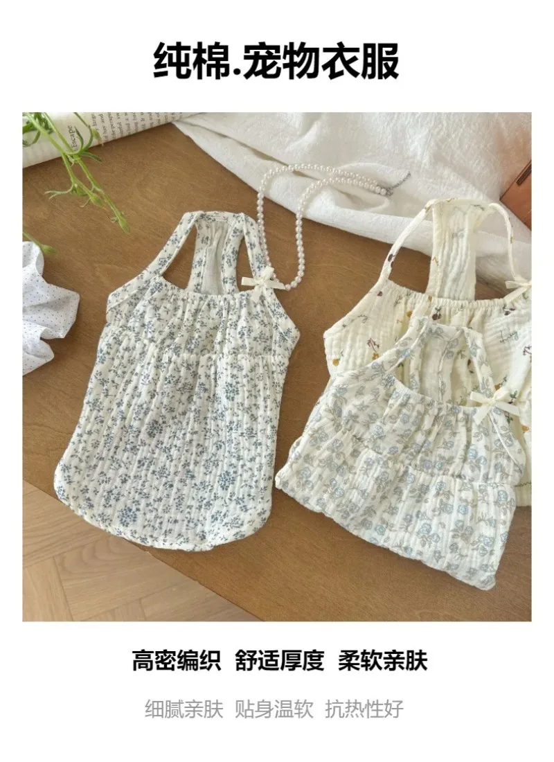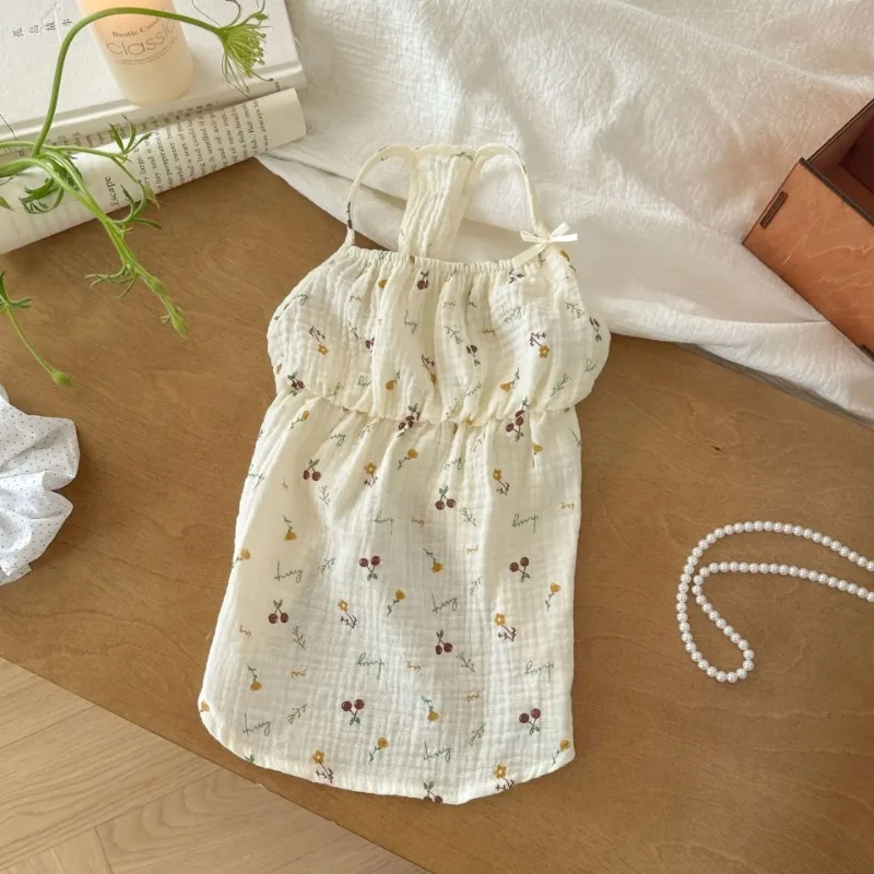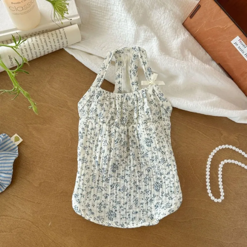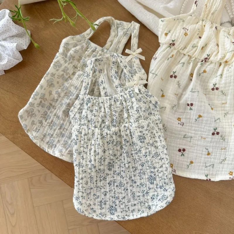Ropa para mascotas, camisa con lazo, chaleco de flores de verano, camisola, vestido, pijamas para el hogar, camiseta para perros pequeños, falda Base, trajes para cachorros