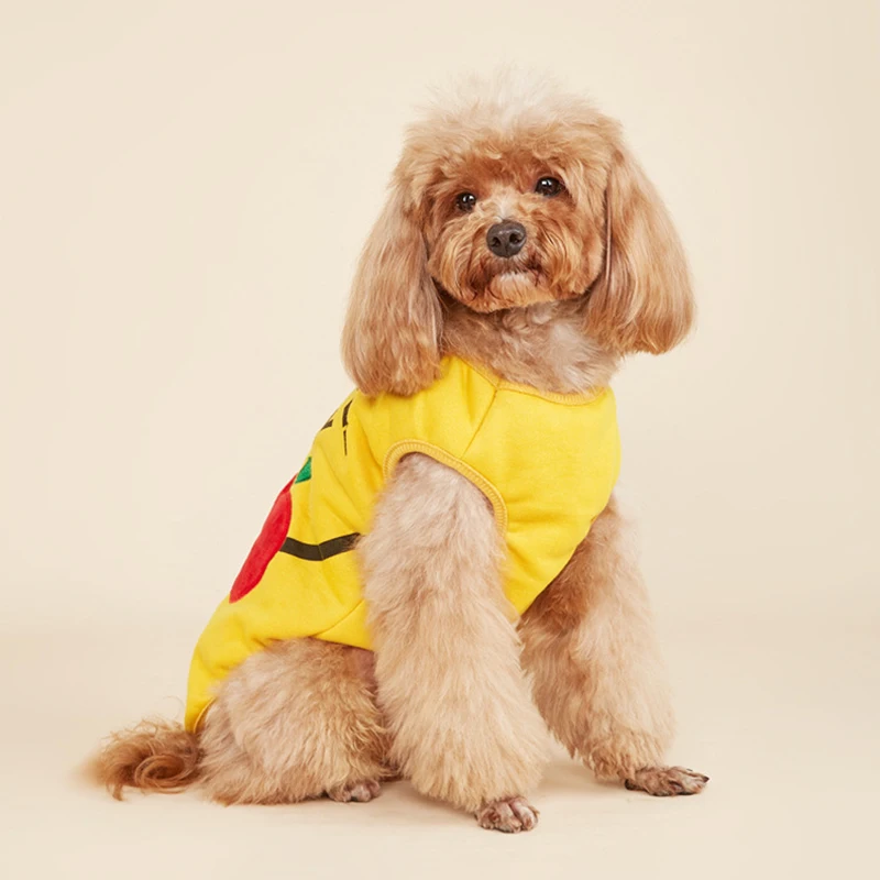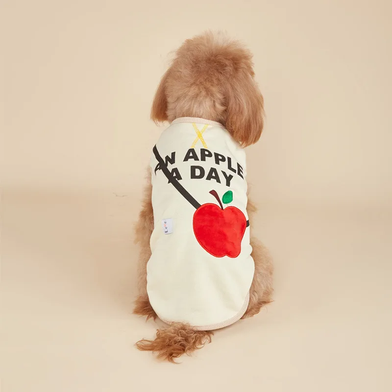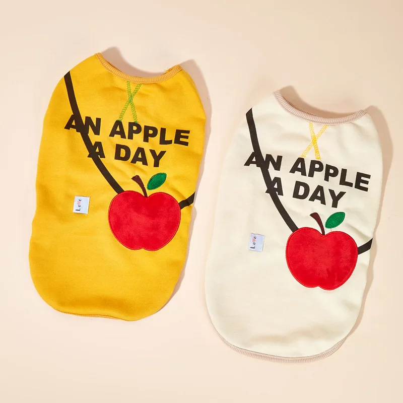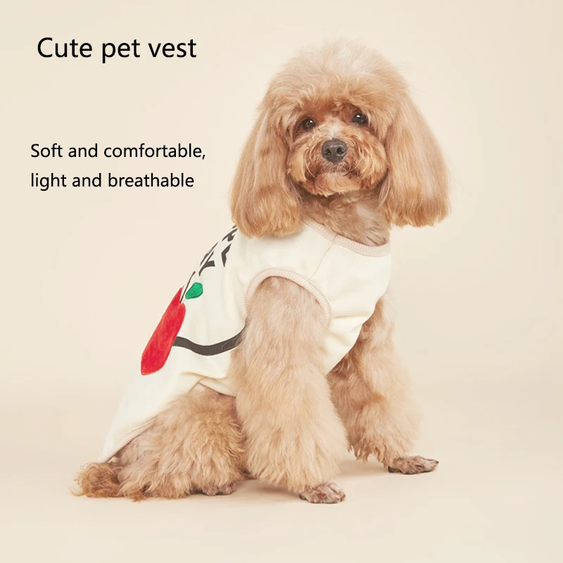 Ropa para mascotas, chaleco ligero y transpirable de dos pies sin mangas con dibujos animados, gato, perro, estampado de manzana, ropa para mascotas con letras, chaleco para perros