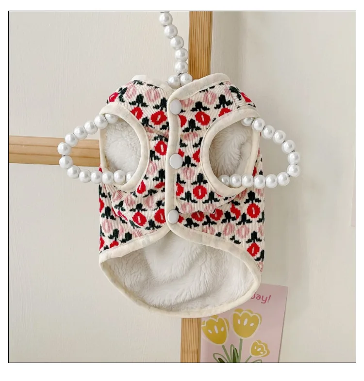 Ropa para mascotas, chaleco de tulipán para perros pequeños, abrigo grueso de lana de cordero para gatos, oso de peluche de dos pies, ropa de otoño e invierno para cachorros