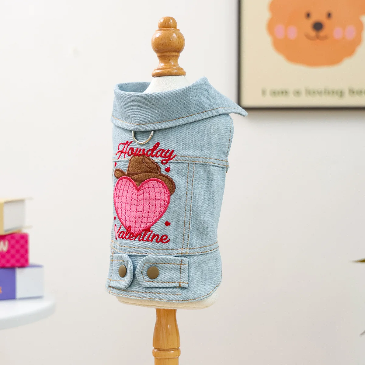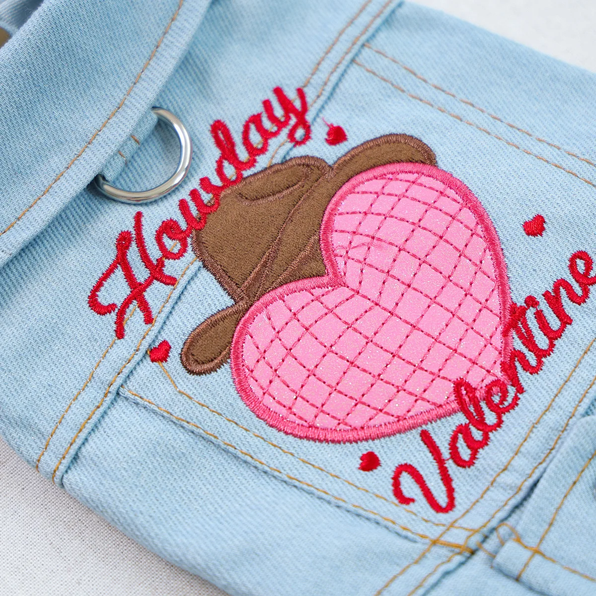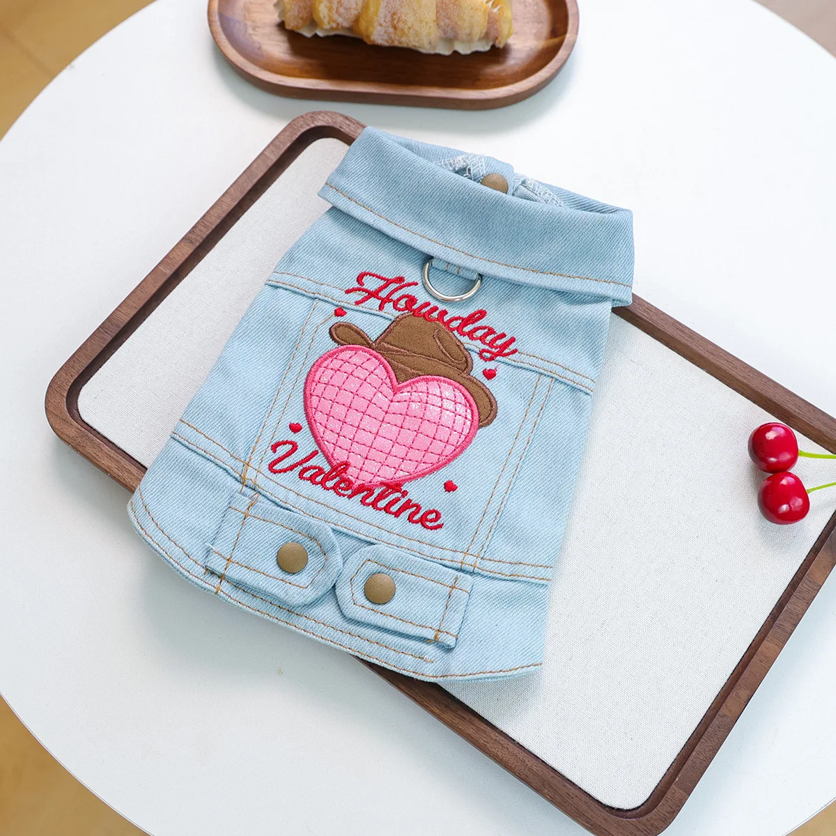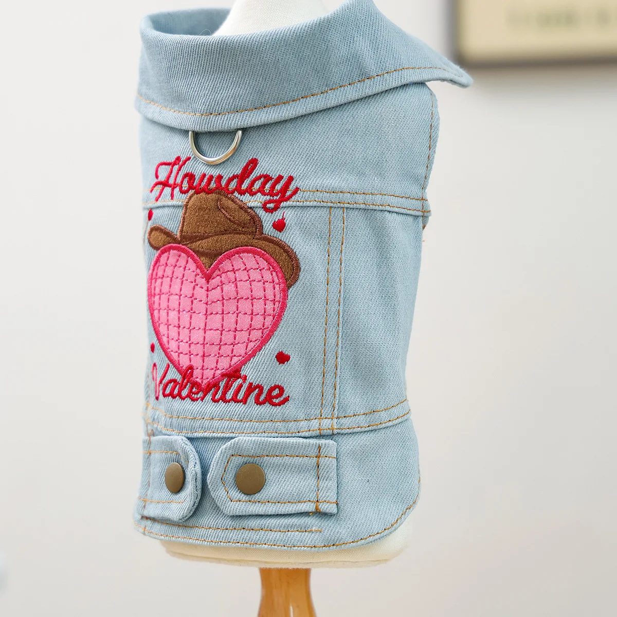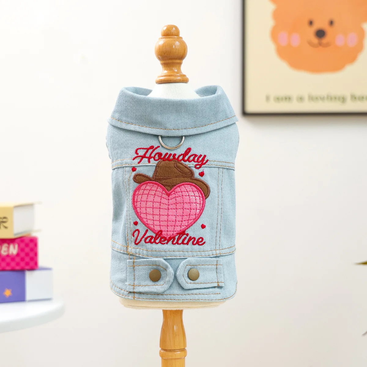 Ropa para mascotas, chaqueta vaquera bordada de otoño e invierno, cómoda chaqueta vaquera para el Día de San Valentín para gatos, ropa para perros pequeños