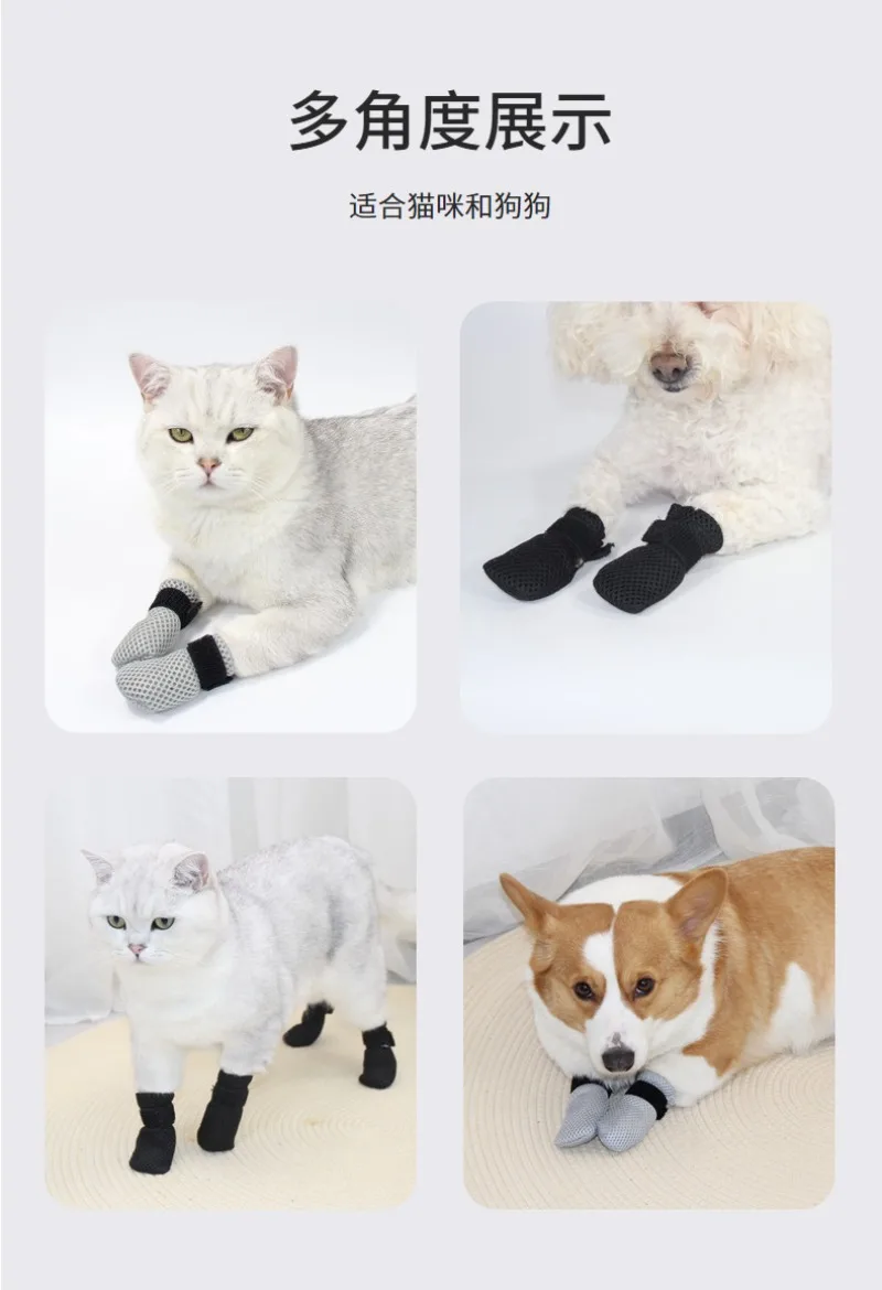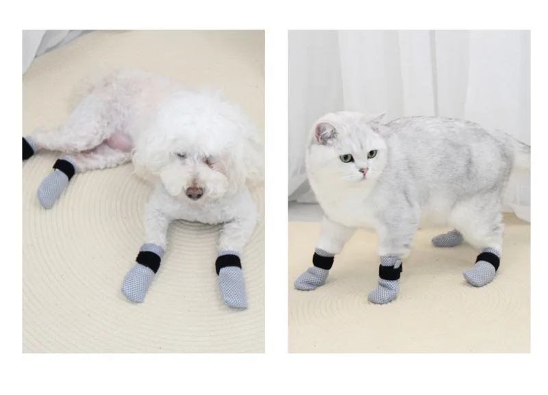 Descripción:Baño, medicina de alimentación, inyección, cubierta para pies de gato, cubierta para zapatos para mascotas resistente al desgaste, antiarañazos y anticaídas, suministros postoperatorios transfronterizos para mascotas