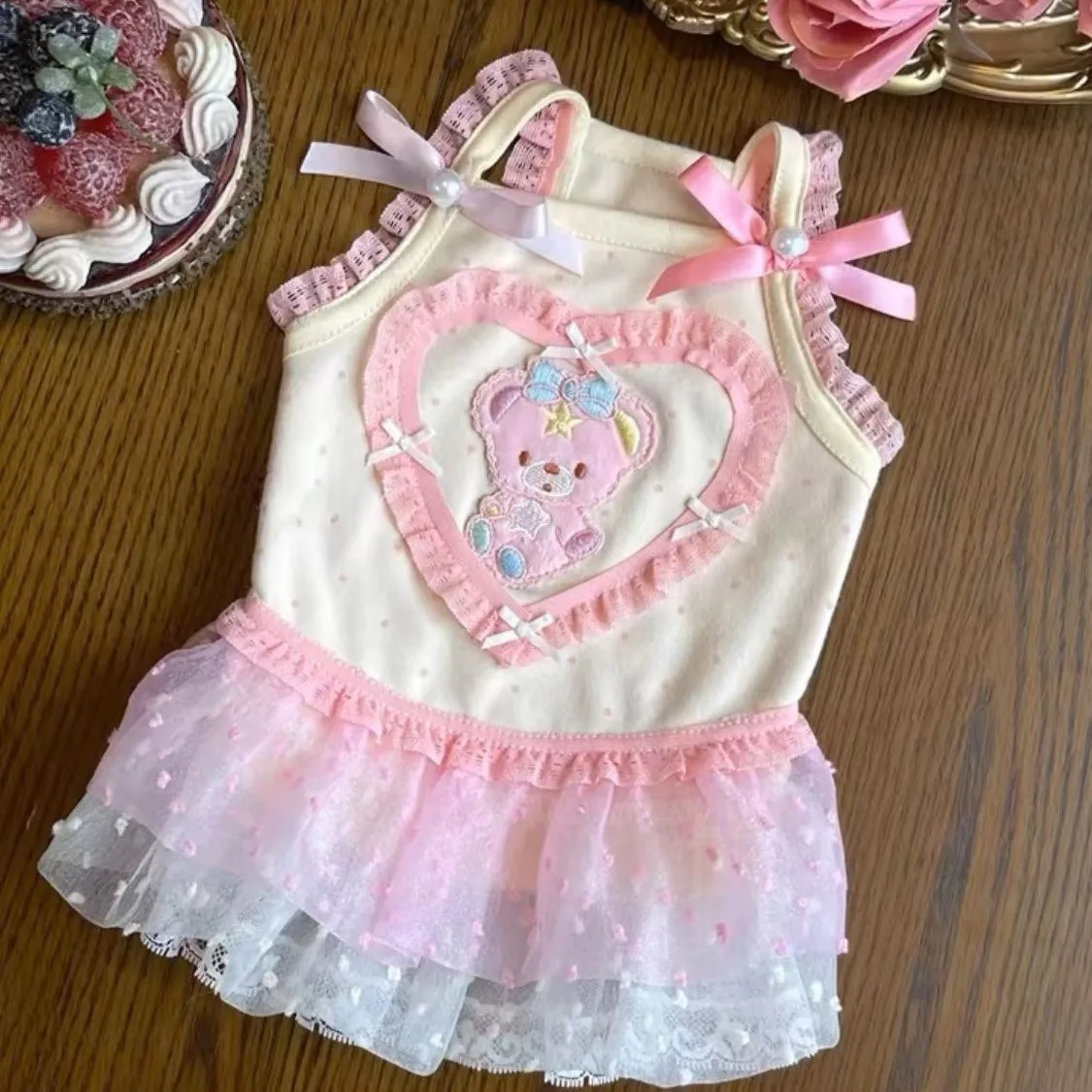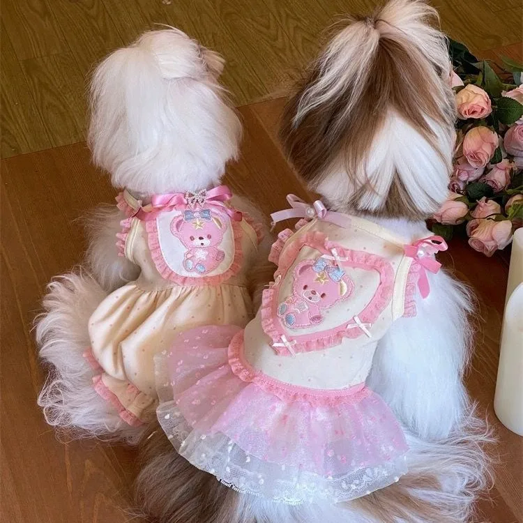 Ropa para mascotas, falda corta de princesa con tirantes de encaje Floral de primavera, oso de peluche, ropa para el hogar para perros y gatos, vestidos para perros pequeños