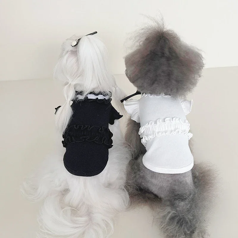 Ropa para mascotas falda de princesa verano invierno Base camisa cuello Correa versátil manga voladora Base camisa perro camiseta sin mangas ropa para perros