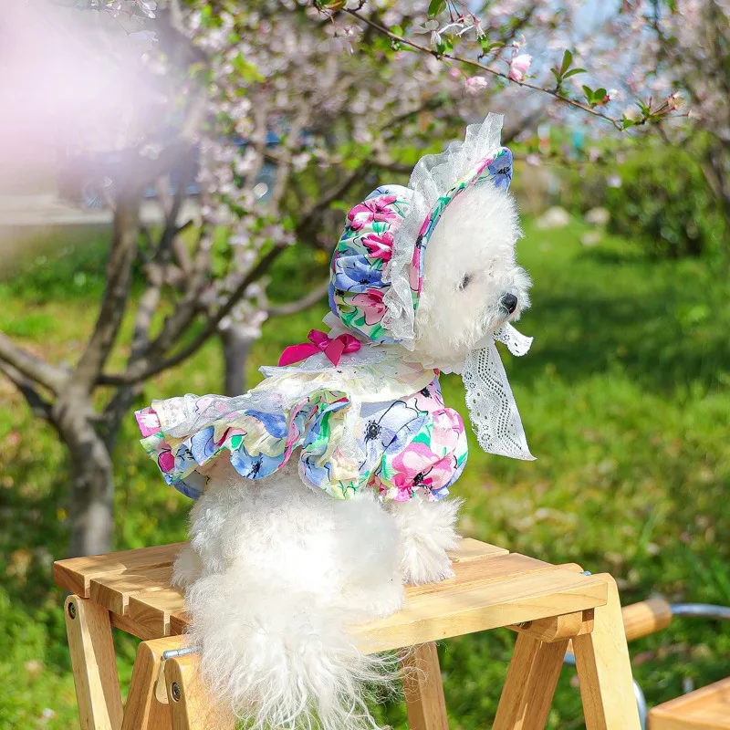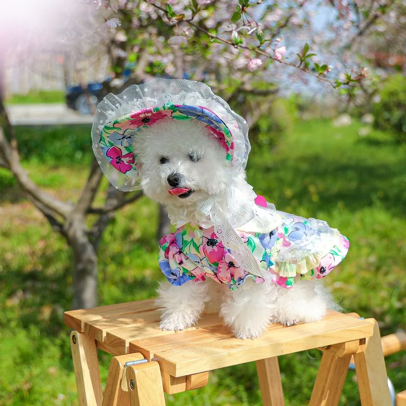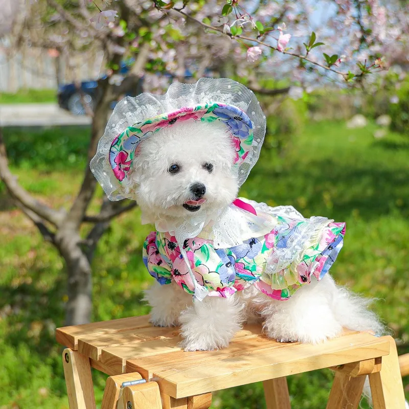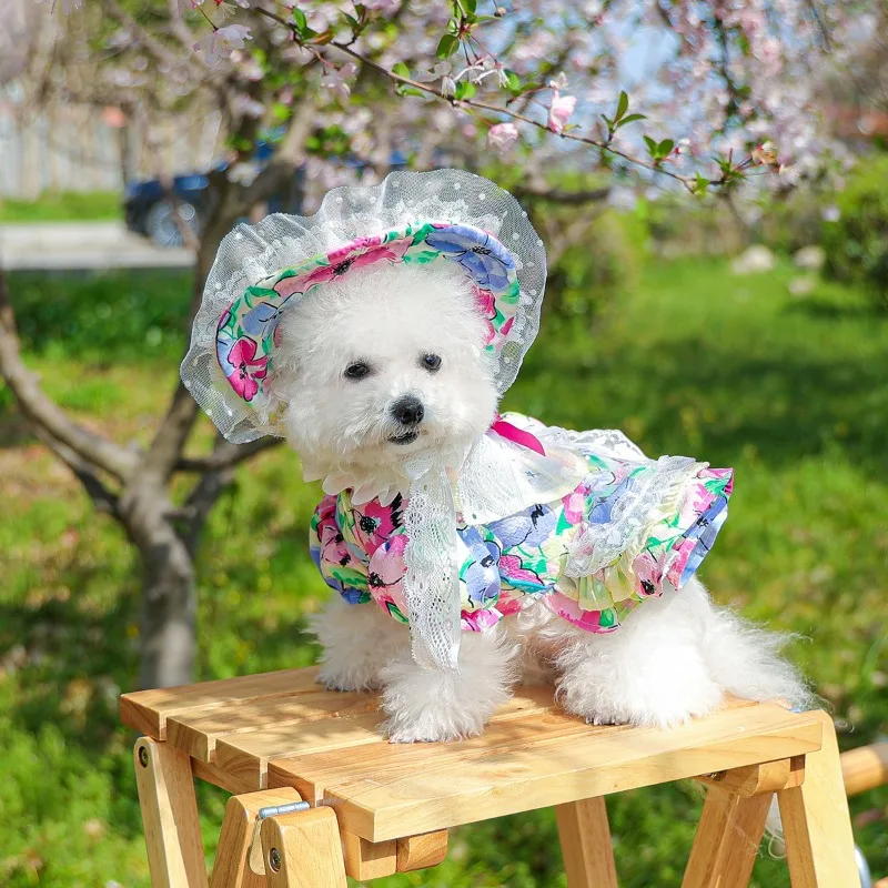 Ropa para mascotas Ins, vestido con tirantes para perros, falda Floral de burbujas, falda con lazo de calabaza, disfraz de fiesta de princesa, regalo de cumpleaños, ropa de lujo para perros