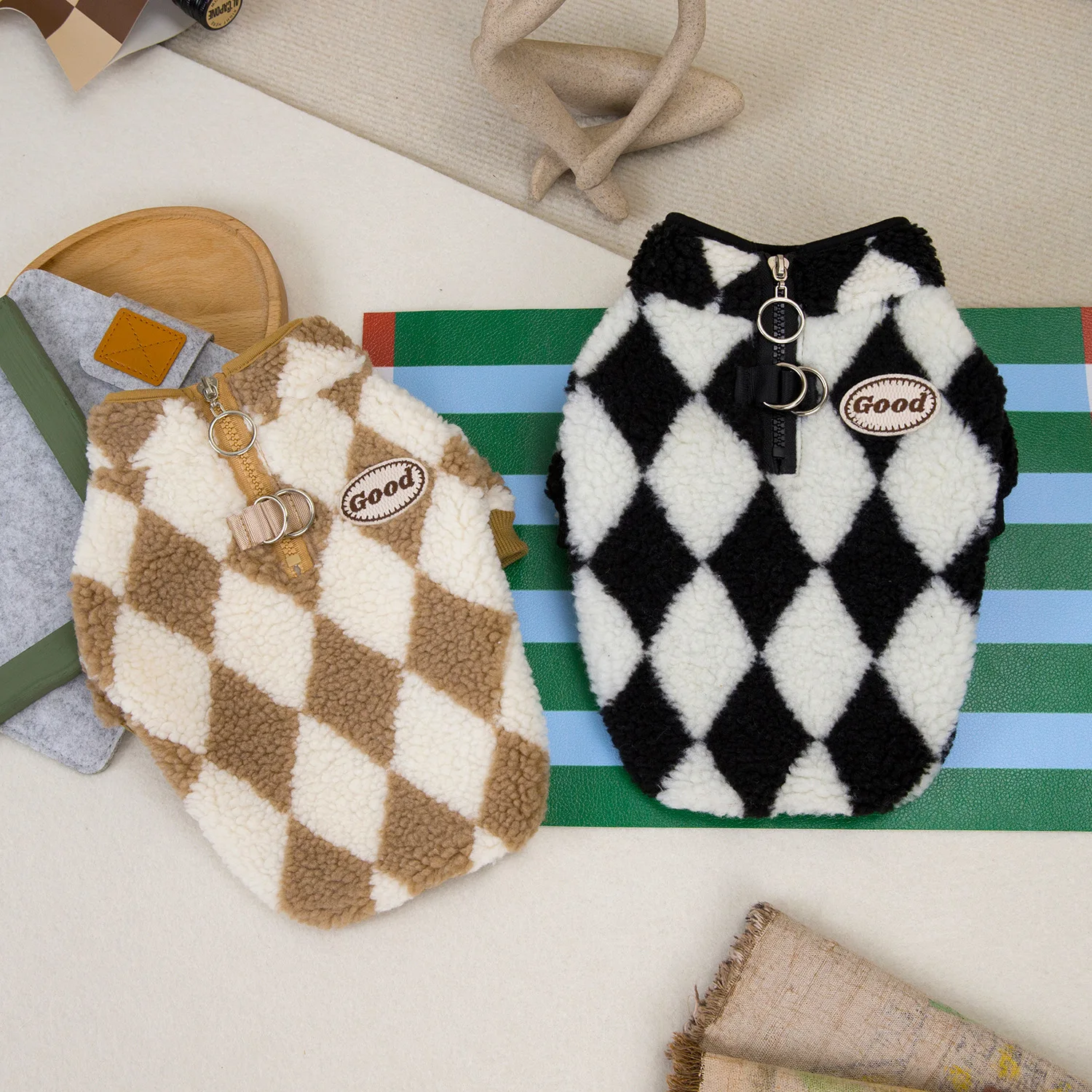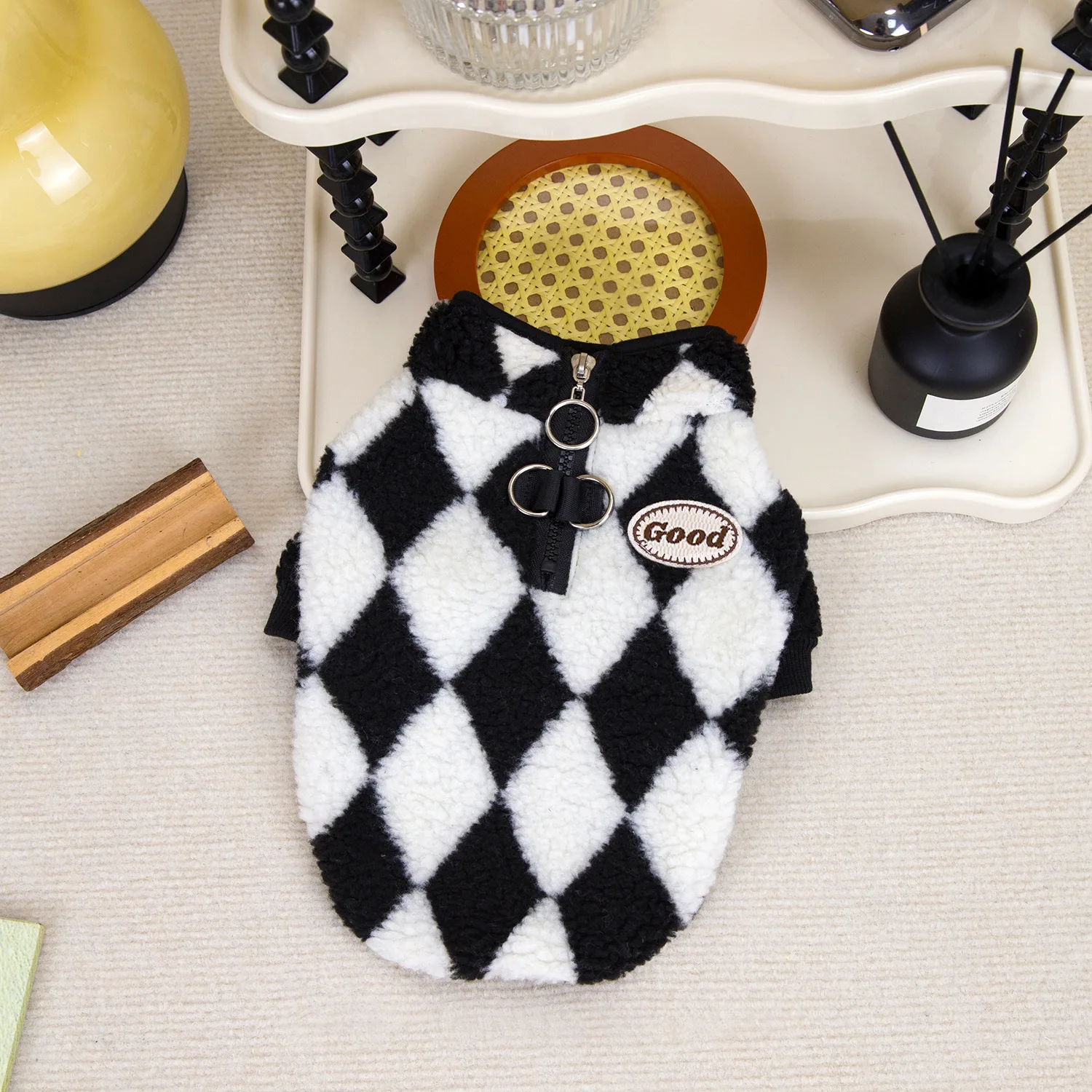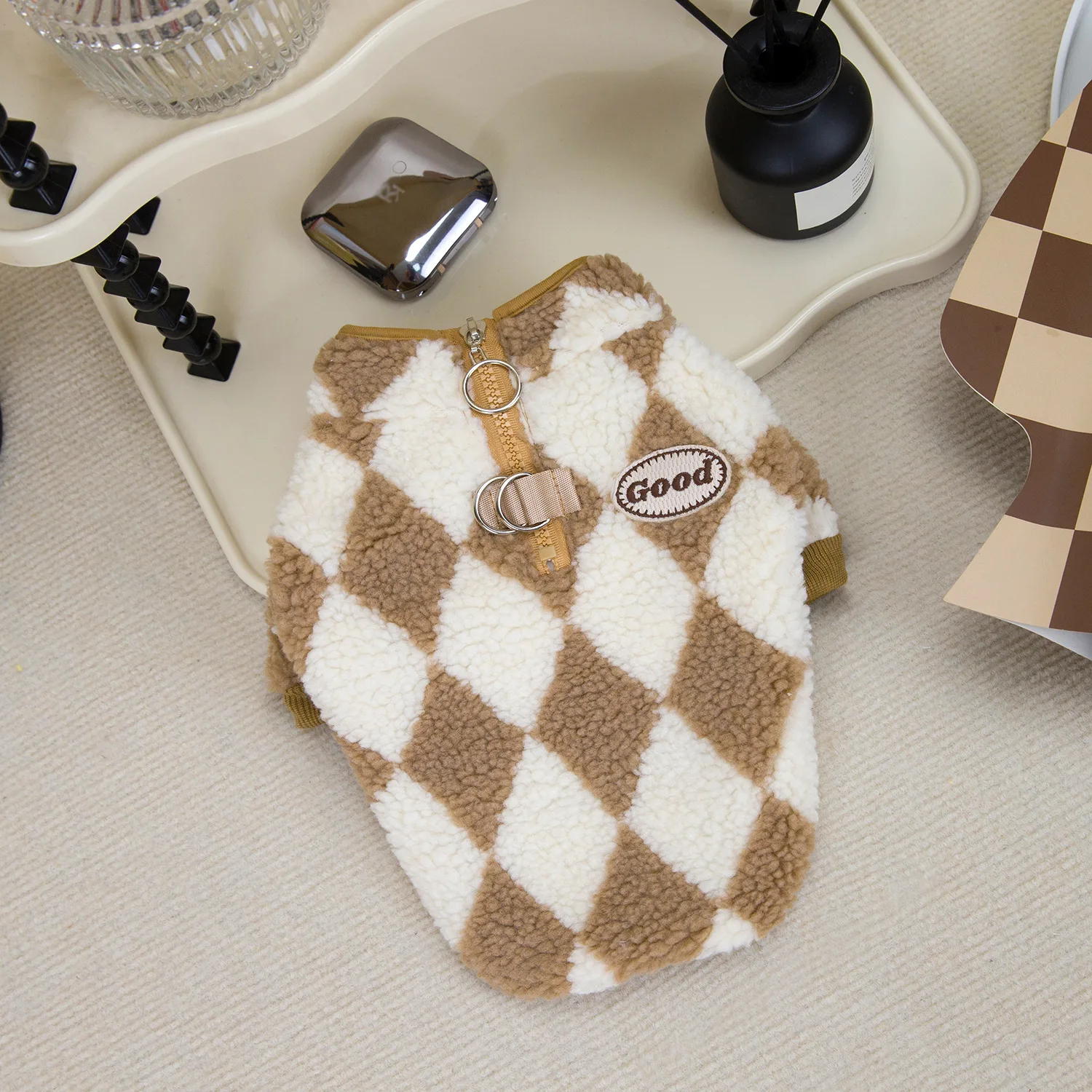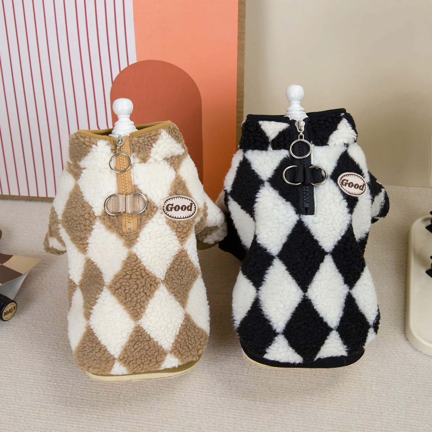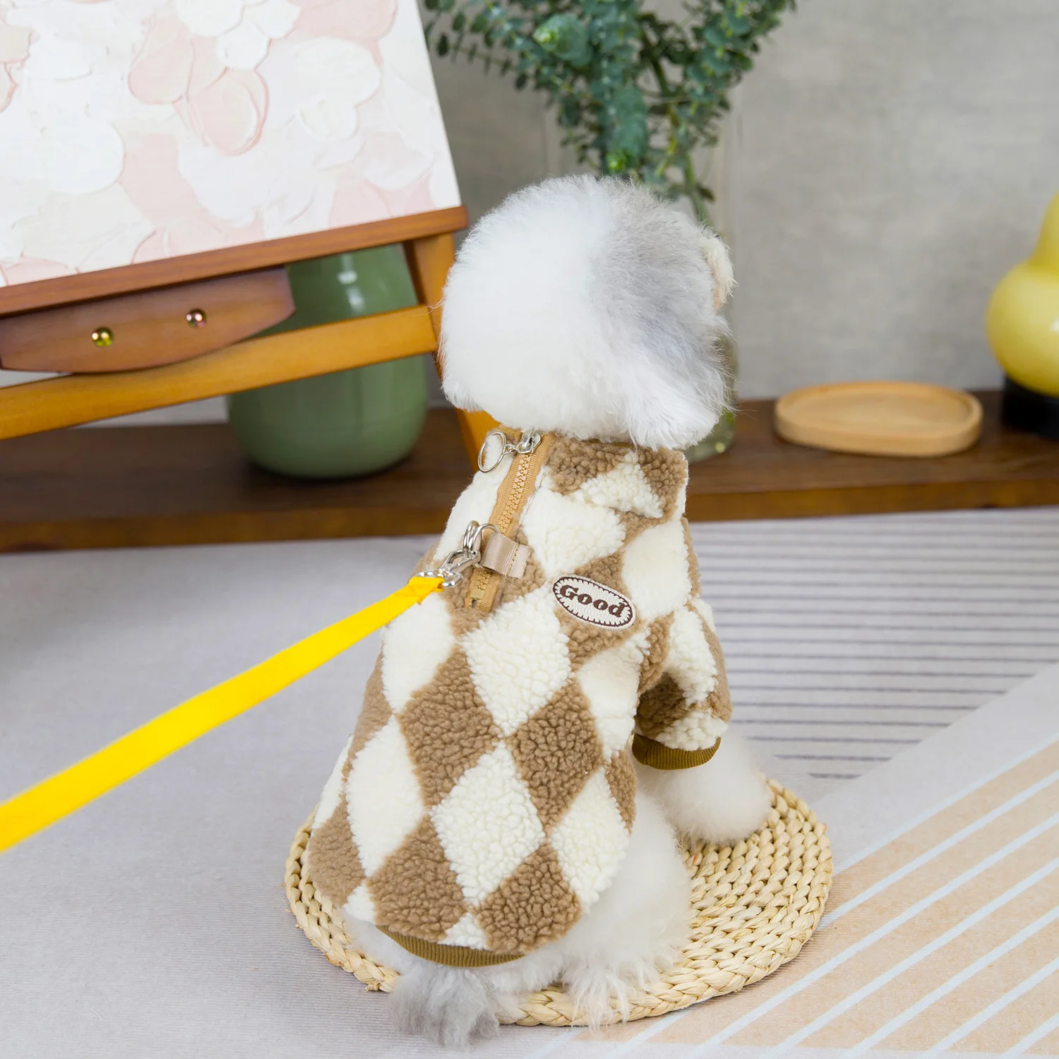 Ropa para mascotas nueva Otoño e Invierno lana de cordero ropa cálida para perros 24 rombos rejilla cremallera polar ropa de algodón para gatos