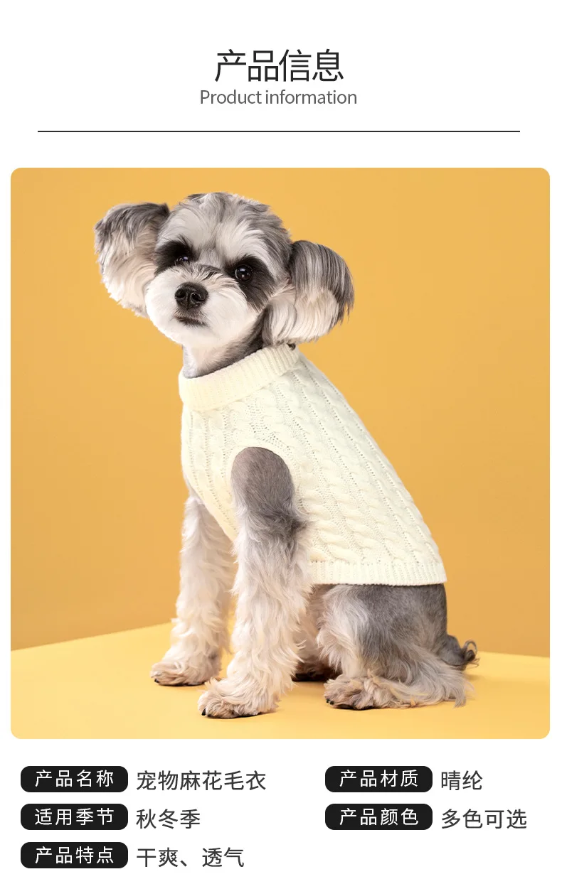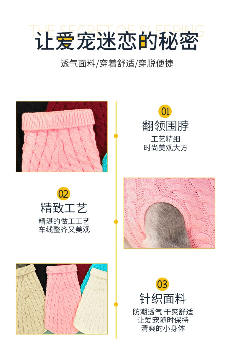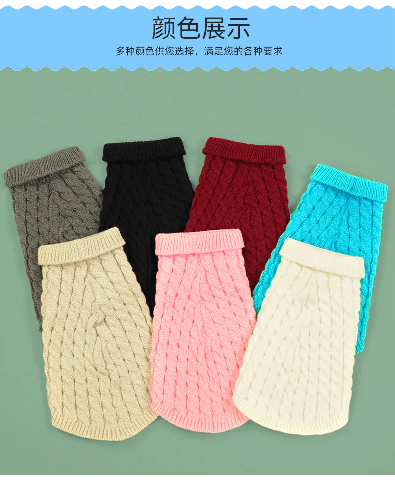 Ropa para mascotas Otoño e Invierno nueva moda suéter de color caramelo perro lindo mascota Color sólido Jersey de punto trenzado