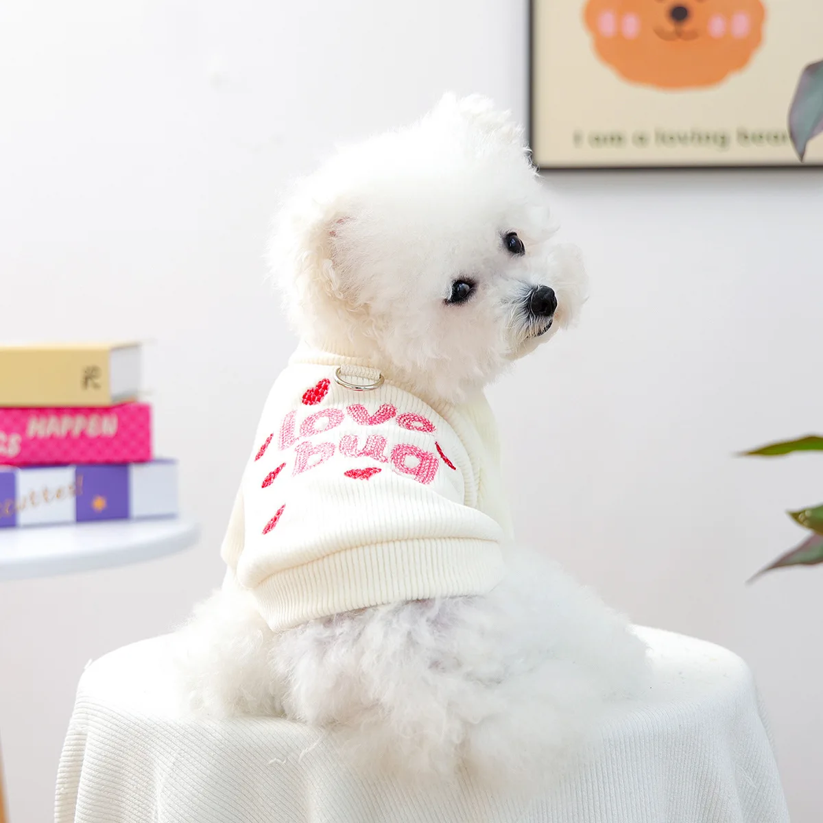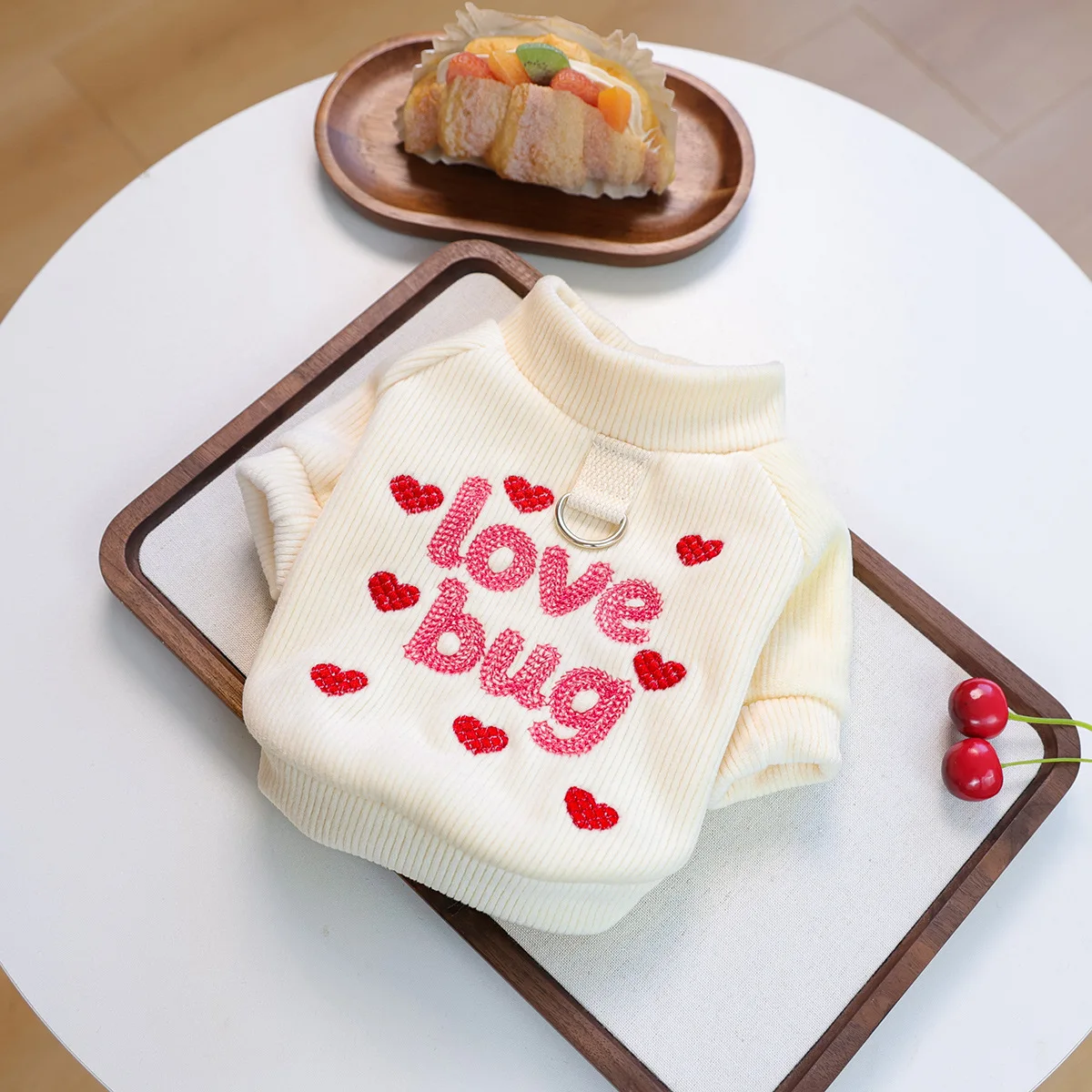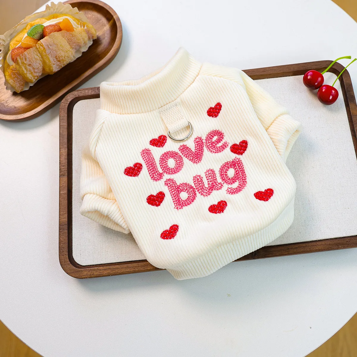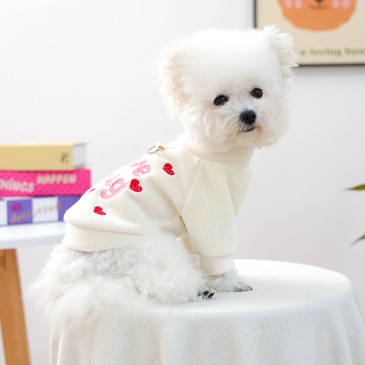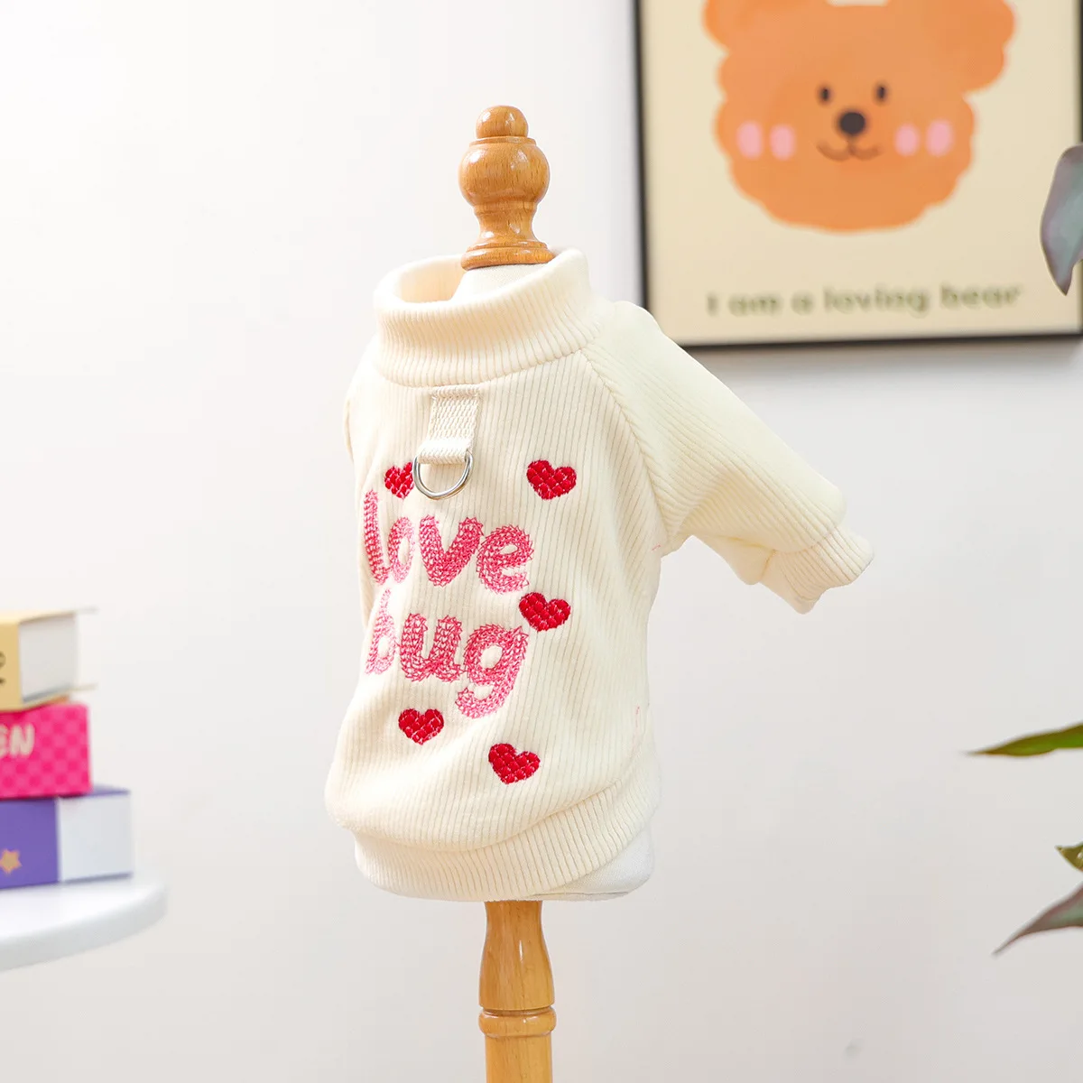 Ropa para mascotas para otoño e invierno, sudadera con capucha de amor bordada con cuello alto, chaqueta cálida para perros y gatos pequeños, ropa para perros pequeños