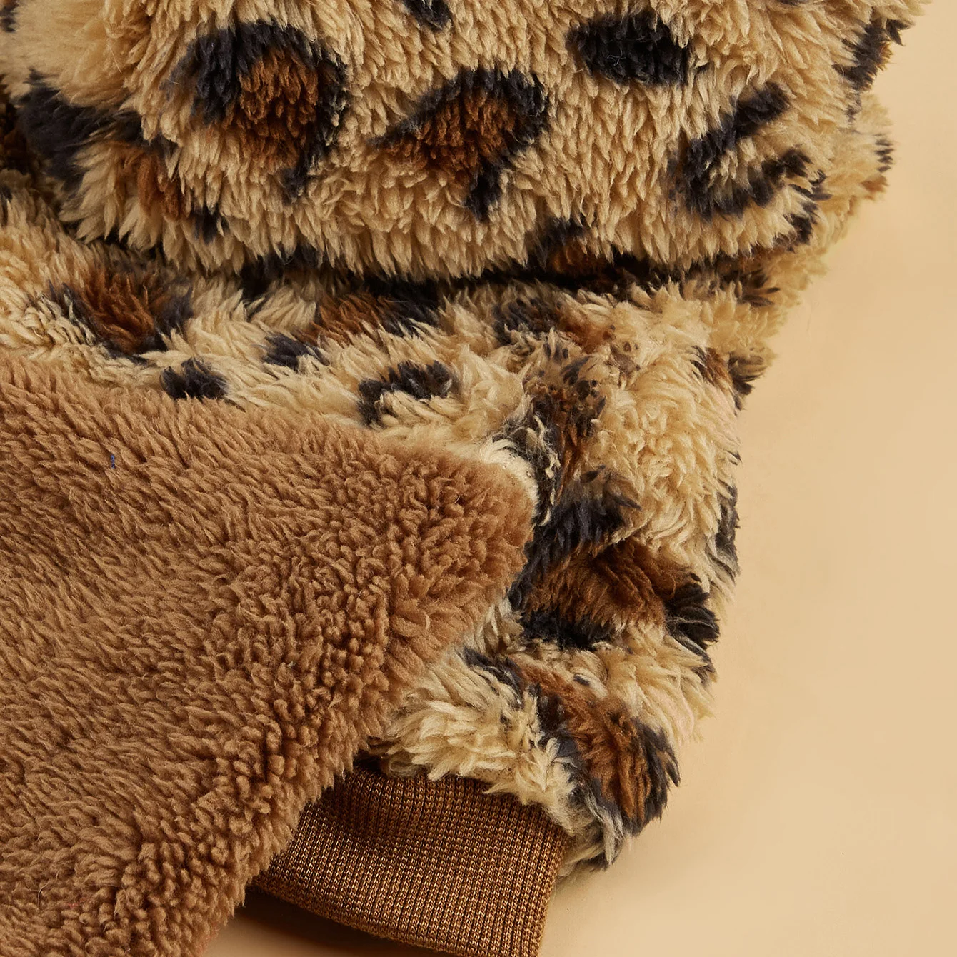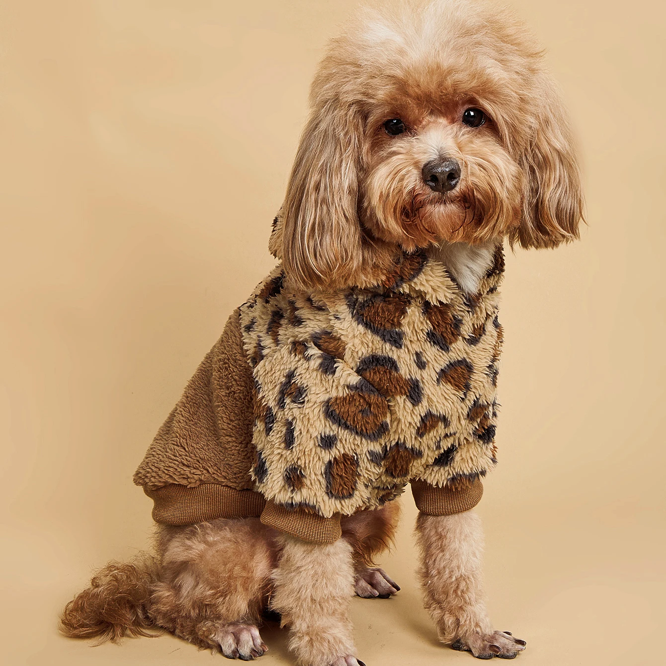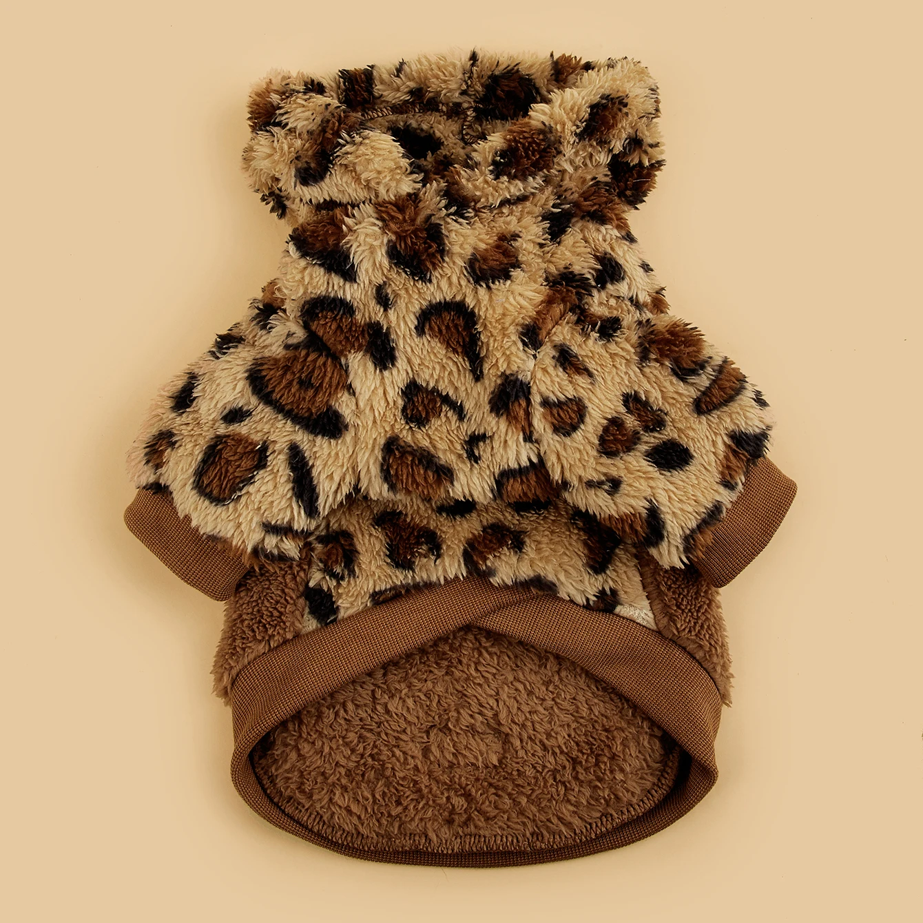 Ropa para mascotas para perros, gatos, cachorros, sudadera con capucha, abrigo peludo de leopardo, sudadera, trajes para perros pequeños y medianos para Otoño e Invierno