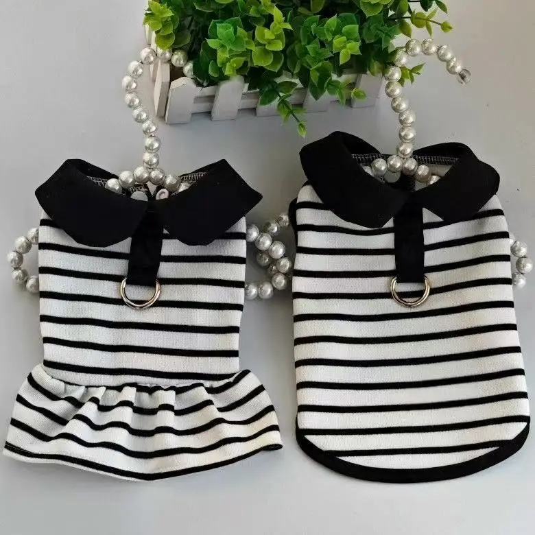 Ropa para mascotas de primavera y verano, camisetas clásicas a rayas para perros, bonito vestido para gatitos, ropa para parejas de mascotas para perros pequeños
