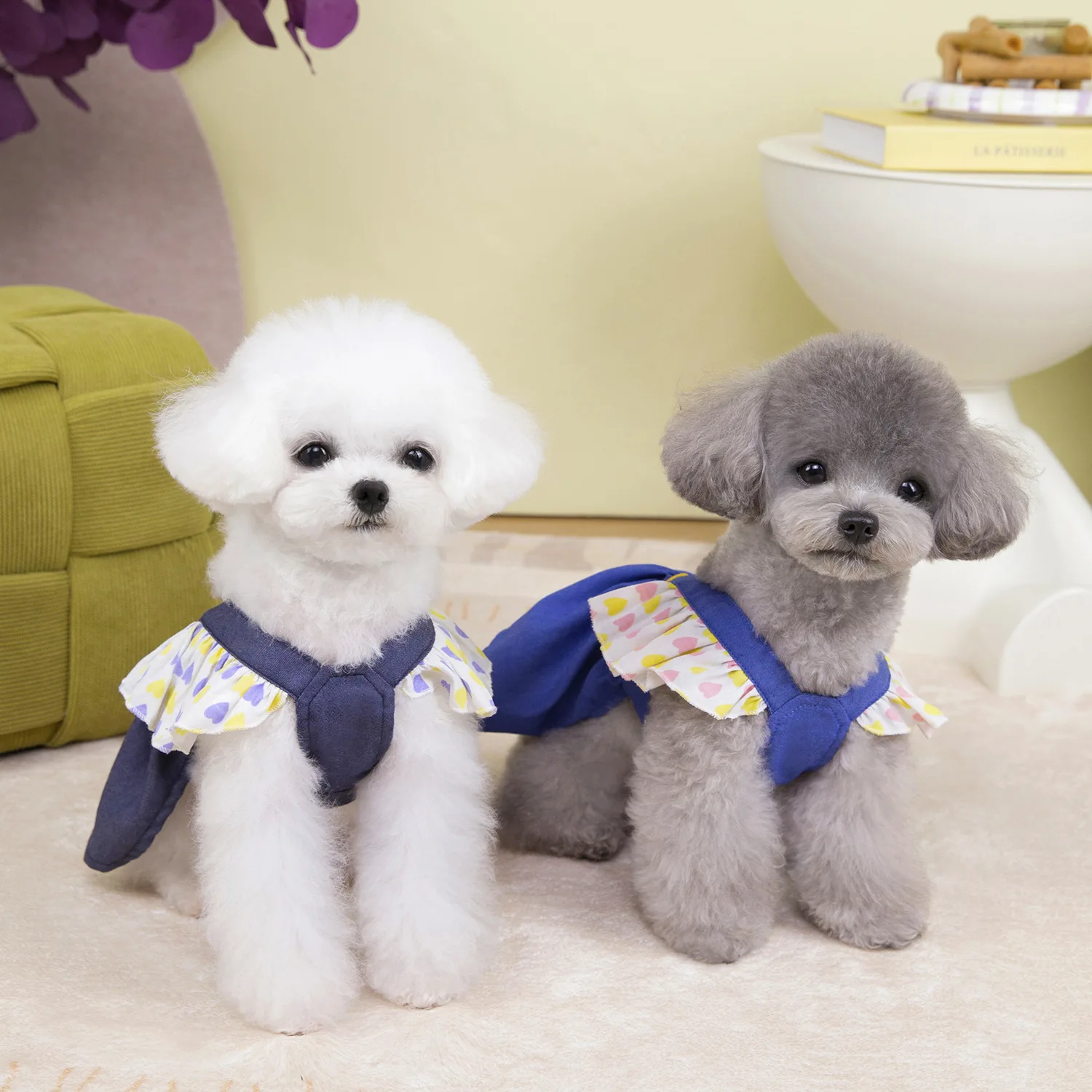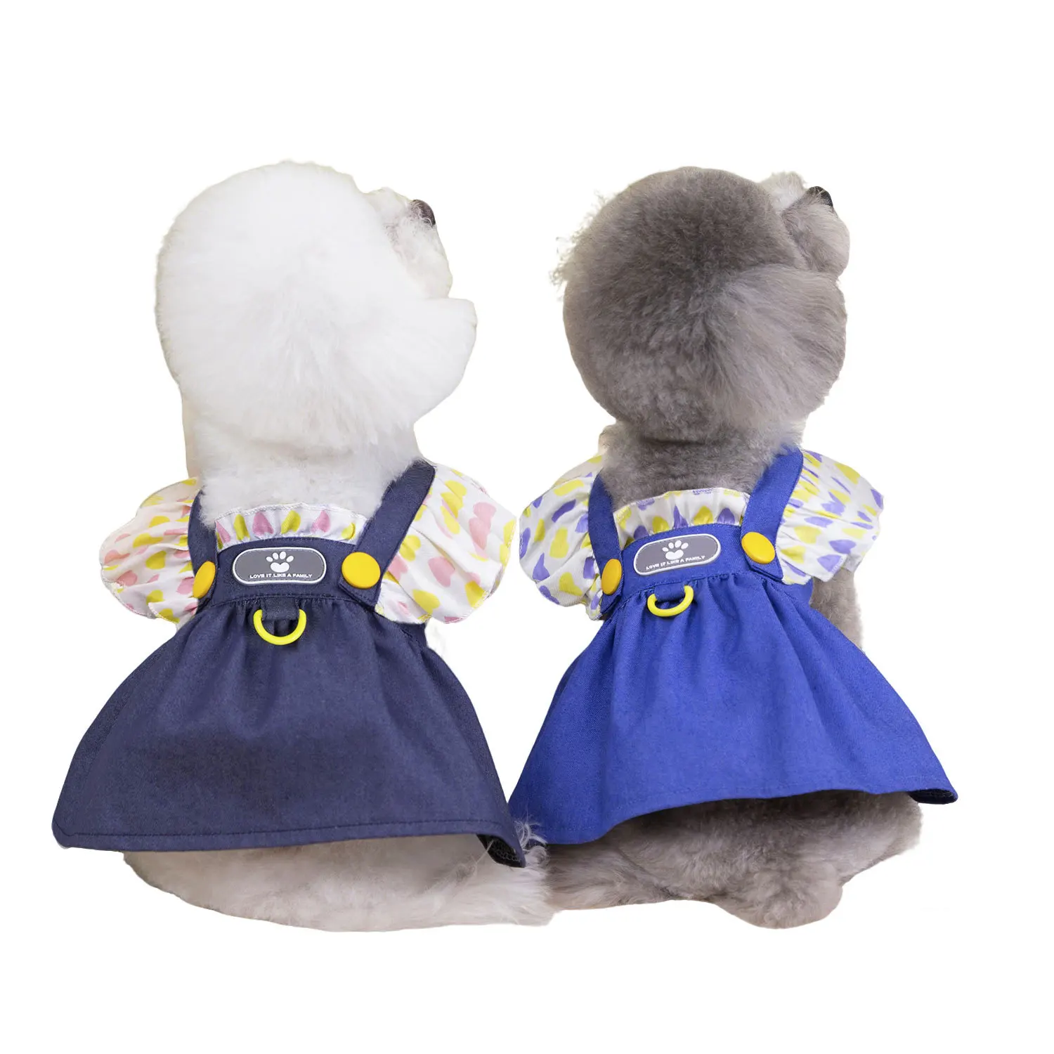 Ropa para mascotas, ropa para gatos, vestidos finos de primavera y verano, faldas vaqueras de hojas de loto, vestidos para perros pequeños, ropa para cachorros