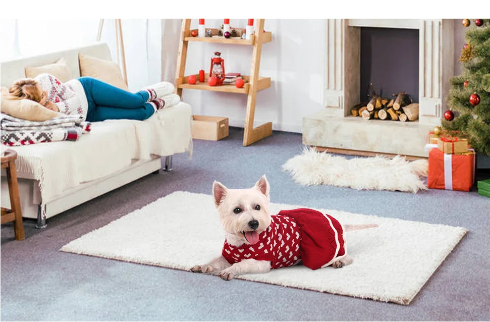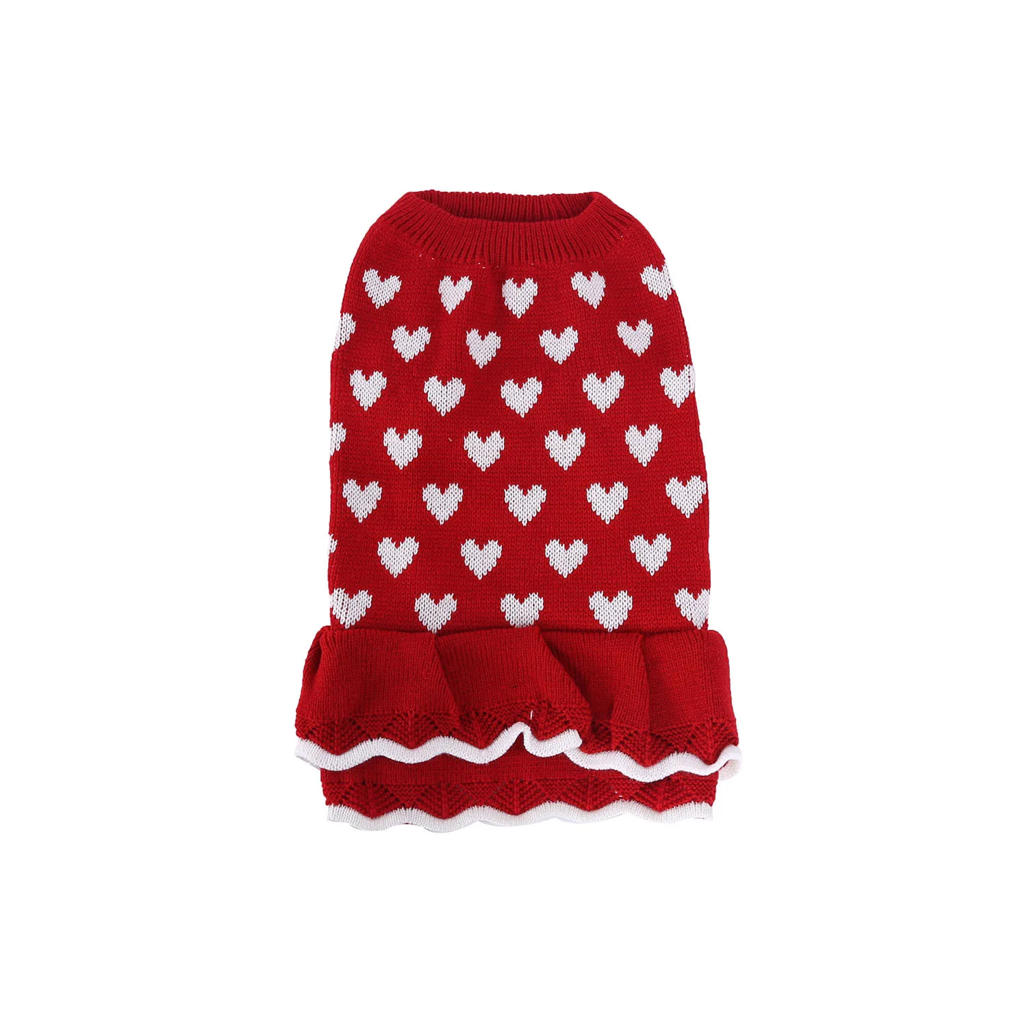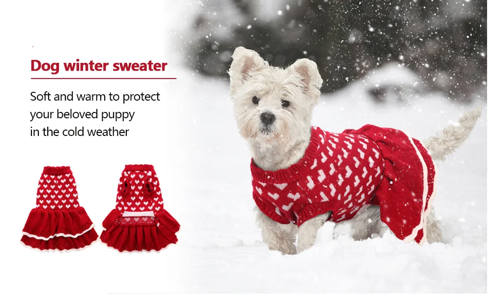 Falda tipo suéter de moda: diseño de vestido tipo suéter para perro, patrón de corazón clásico, esta armonía de color hace que este suéter sea una combinación perfecta para Navidad, gracias y todas las vacaciones. La ropa de invierno del perro se adapta a todos los perros pequeños, medianos o grandes, como el águila, el caniche, el bulldog, el labrador, el pitbull, el bulldog francés, el peluche y el chihuahua.