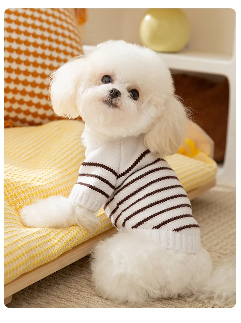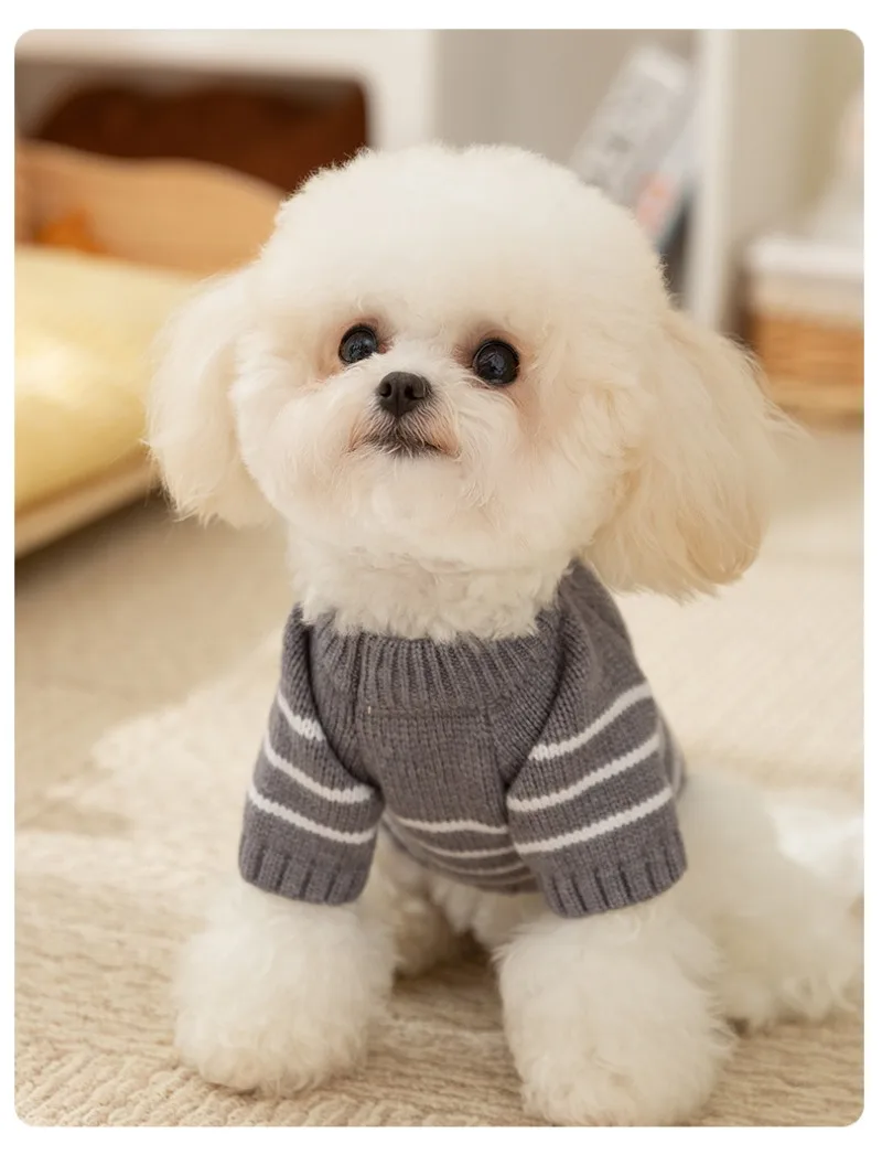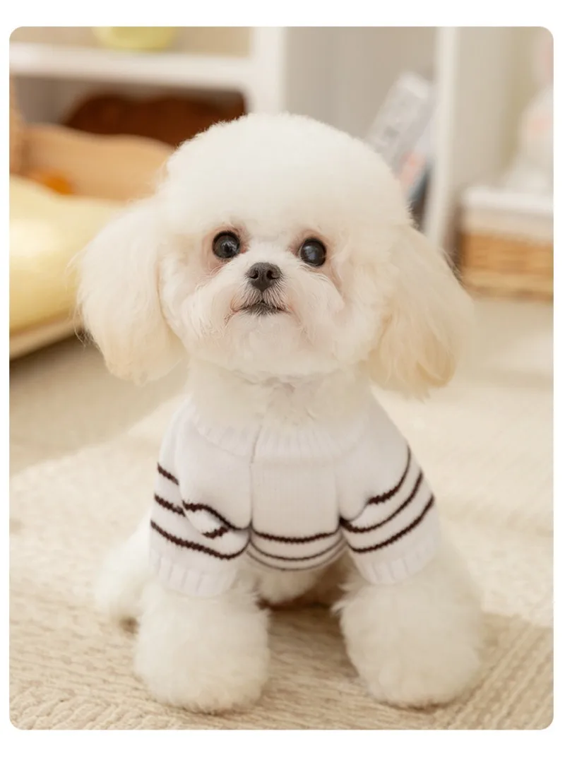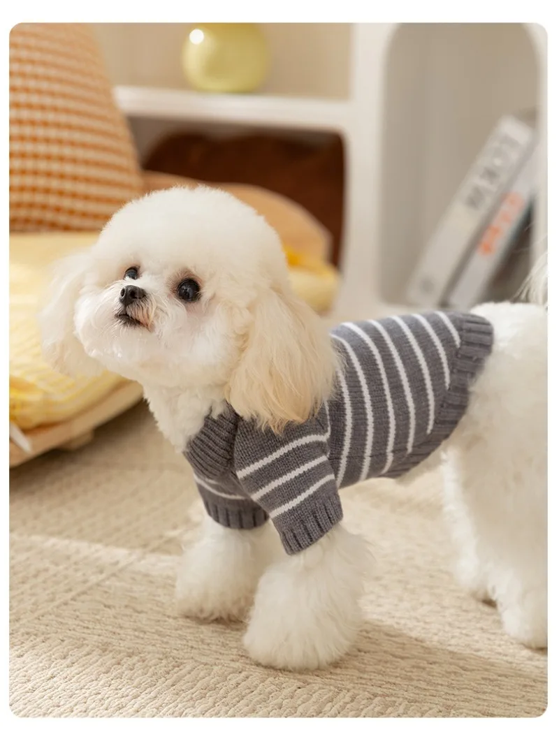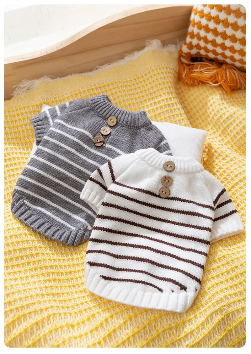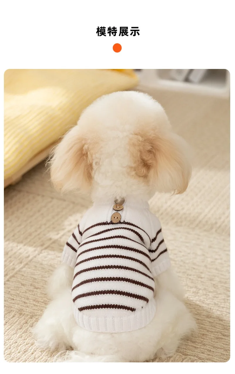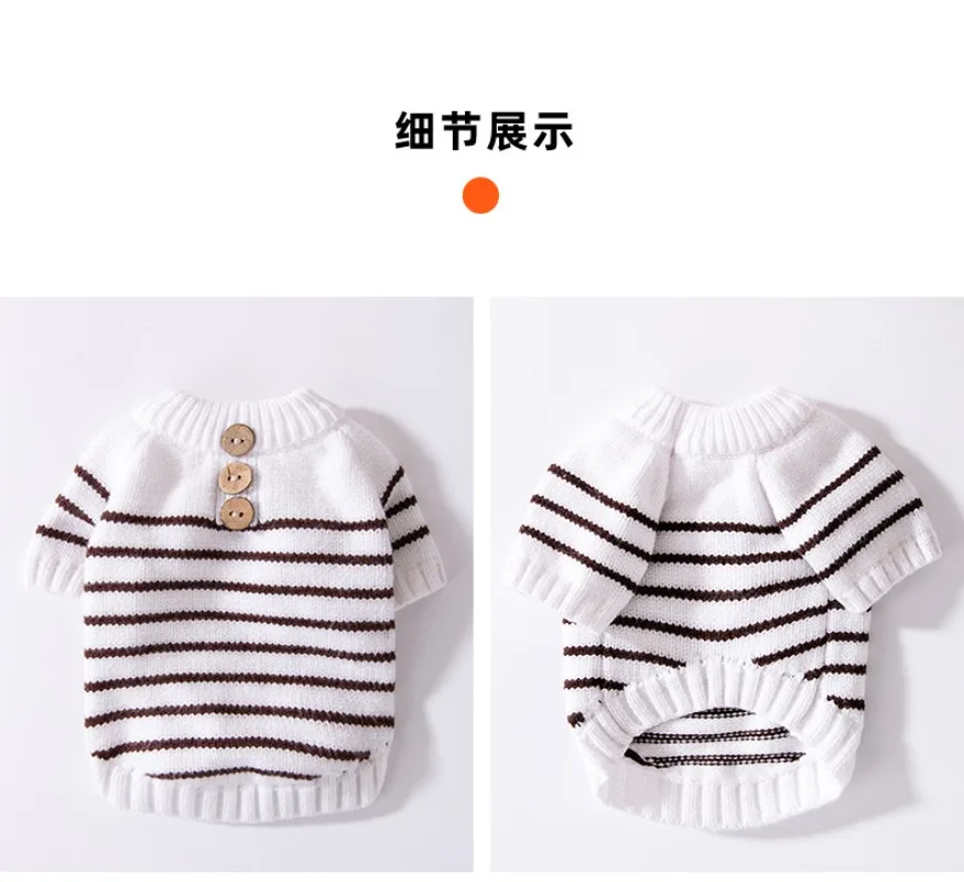 Ropa para mascotas, suéter cálido y sencillo con botones a rayas para perros en otoño e invierno, suéter de punto cálido para gatos, ropa para cachorros