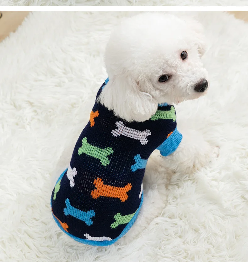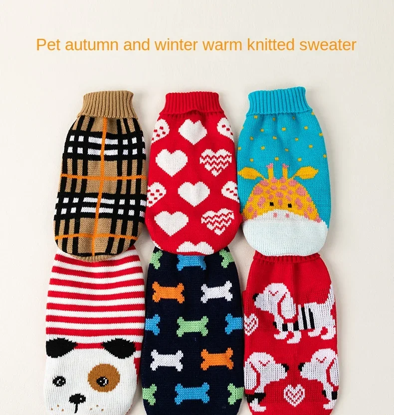 Ropa para mascotas, suéter grueso y cómodo con estampado de dibujos animados para perros, Jersey de punto, ropa para cachorros de Bulldog Francés