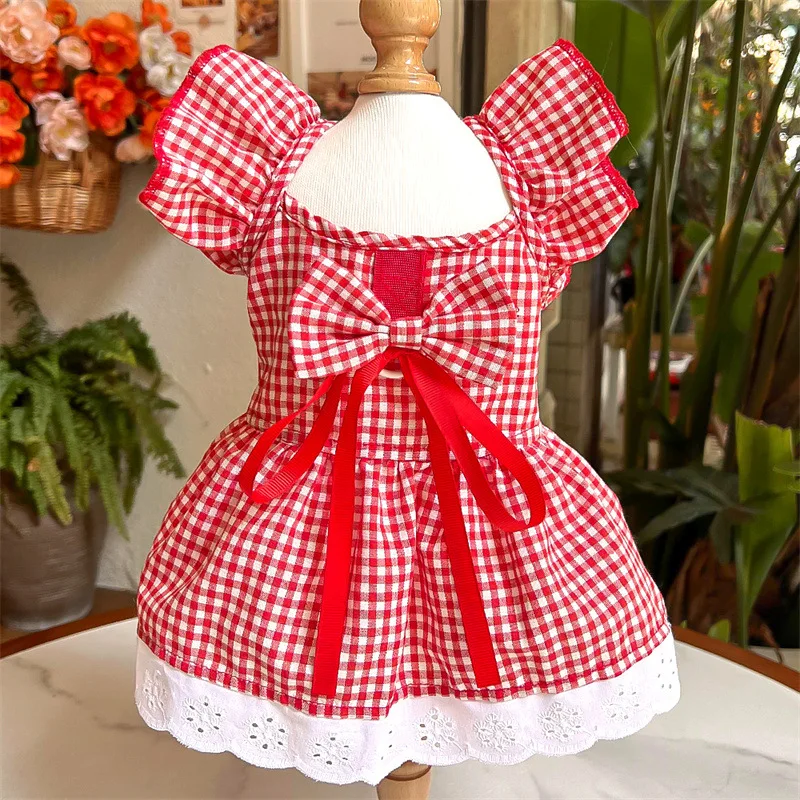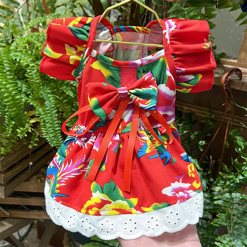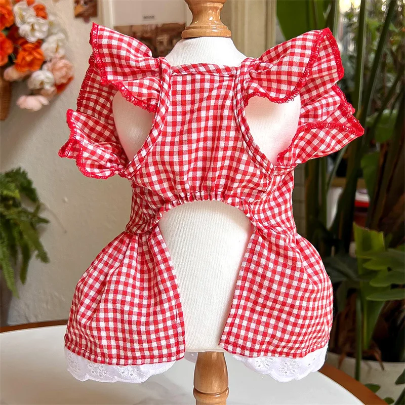 Ropa para mascotas, vestido con mangas voladoras, vestido a cuadros con flores para primavera y verano, oso de peluche, Corgi, ropa para perros y gatos, vestidos para perros pequeños
