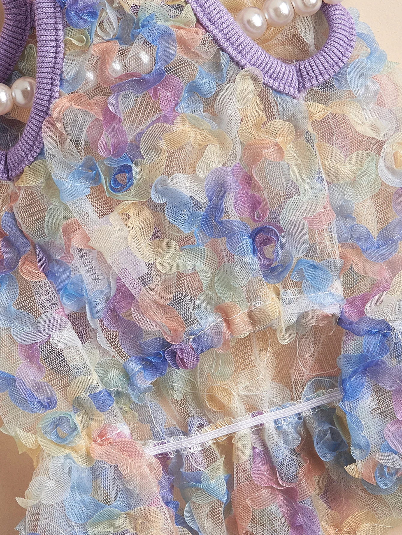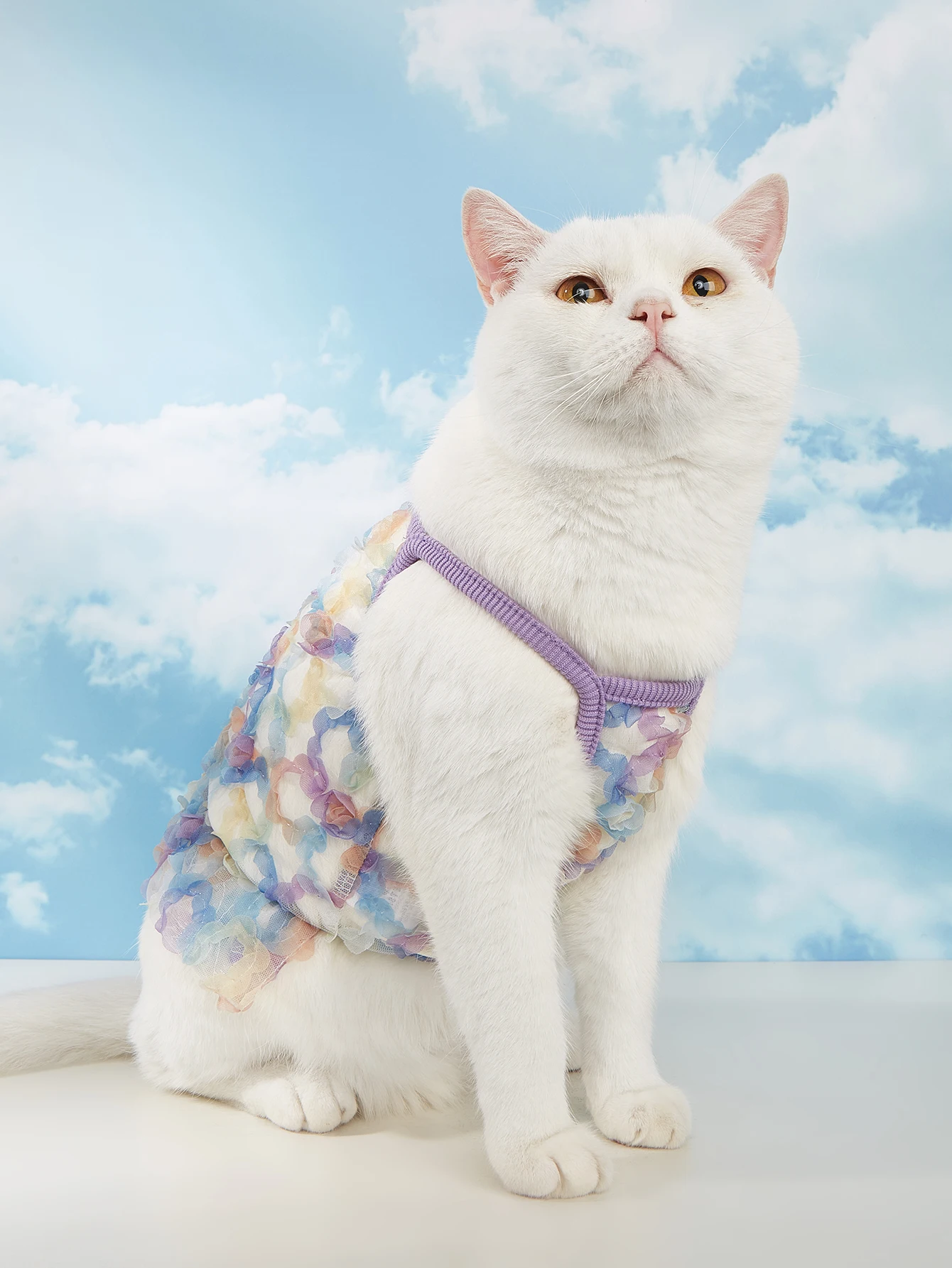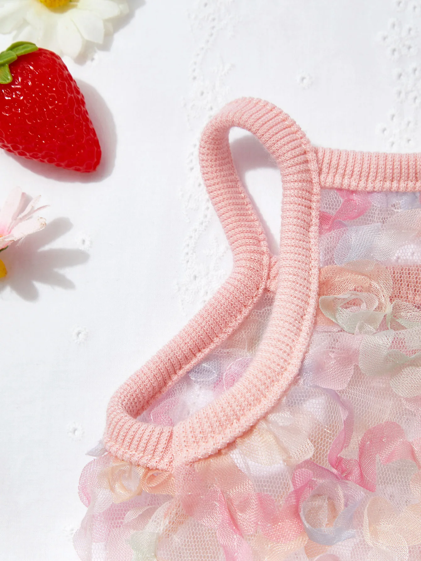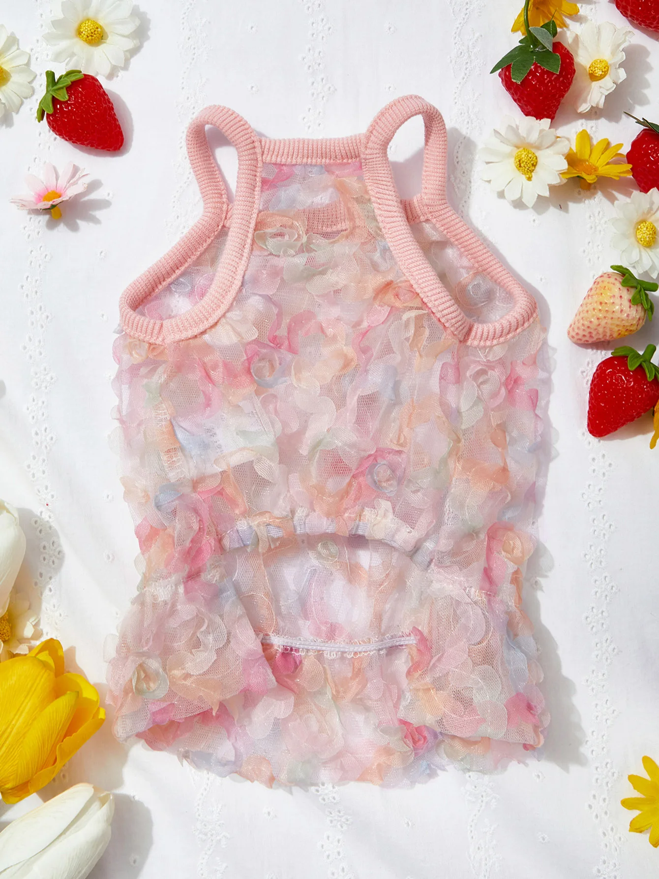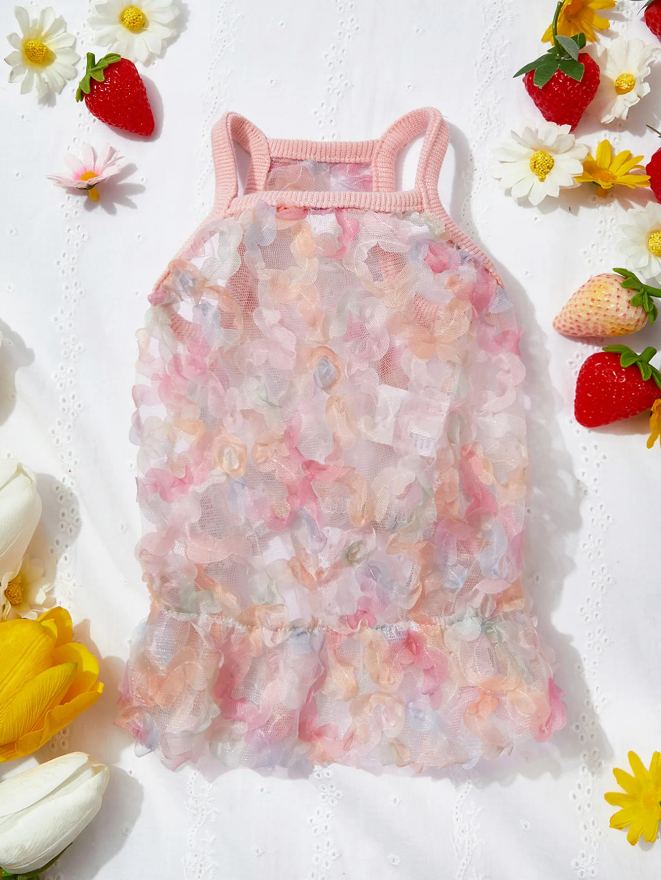 Ropa para mascotas, vestido para perros, falda floral de malla colorida, diseño de cabestrillo, para perros pequeños/gatos, ropa para perros y niñas, lindo traje de verano