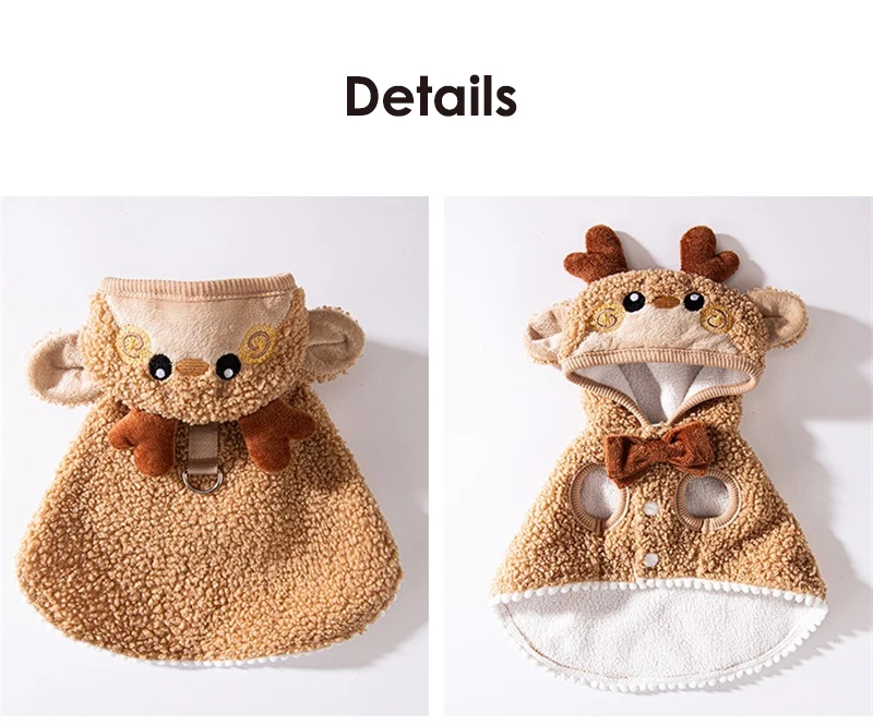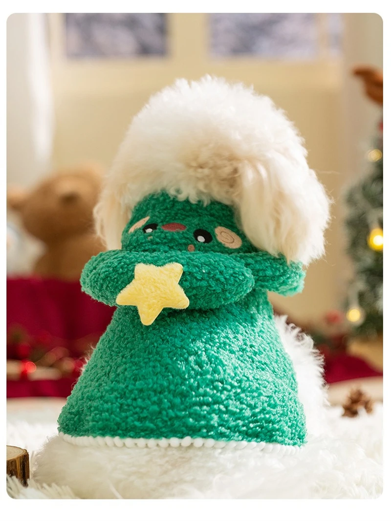 Ropa mediana para perros de Halloween, capa para cachorros de Bulldog Francés con forma de ciervo y árbol de Navidad, trajes de Cosplay cálidos de lana gruesa para gatos
