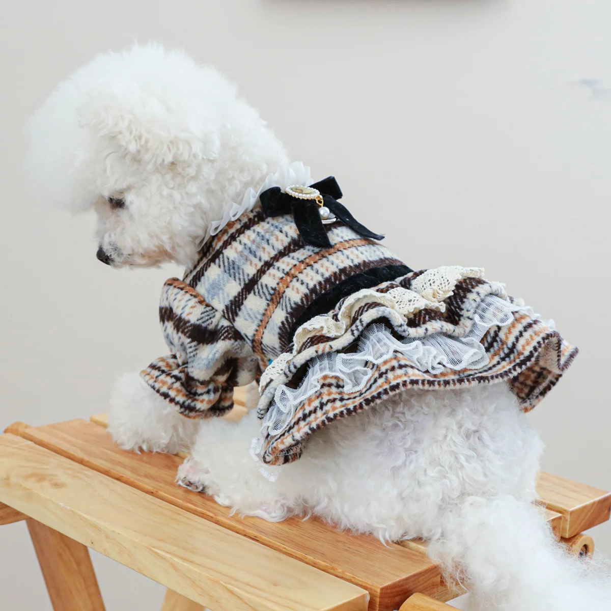 Ropa de moda para perro, vestido de princesa Vintage de encaje a rayas, ropa suave de invierno para perros pequeños, Chihuahua, Bichon para mascotas, nuevo