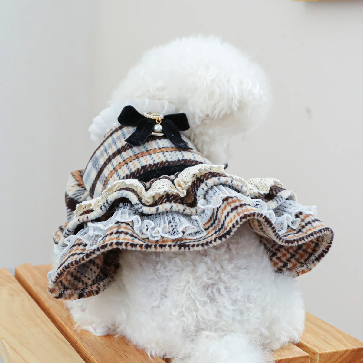 IIns mascota perro Otoño/Invierno abrigo bordado de estrellas cálido Yorkshire Teddy Bow falda de amor vestidos para perros pequeños ropa para cachorros