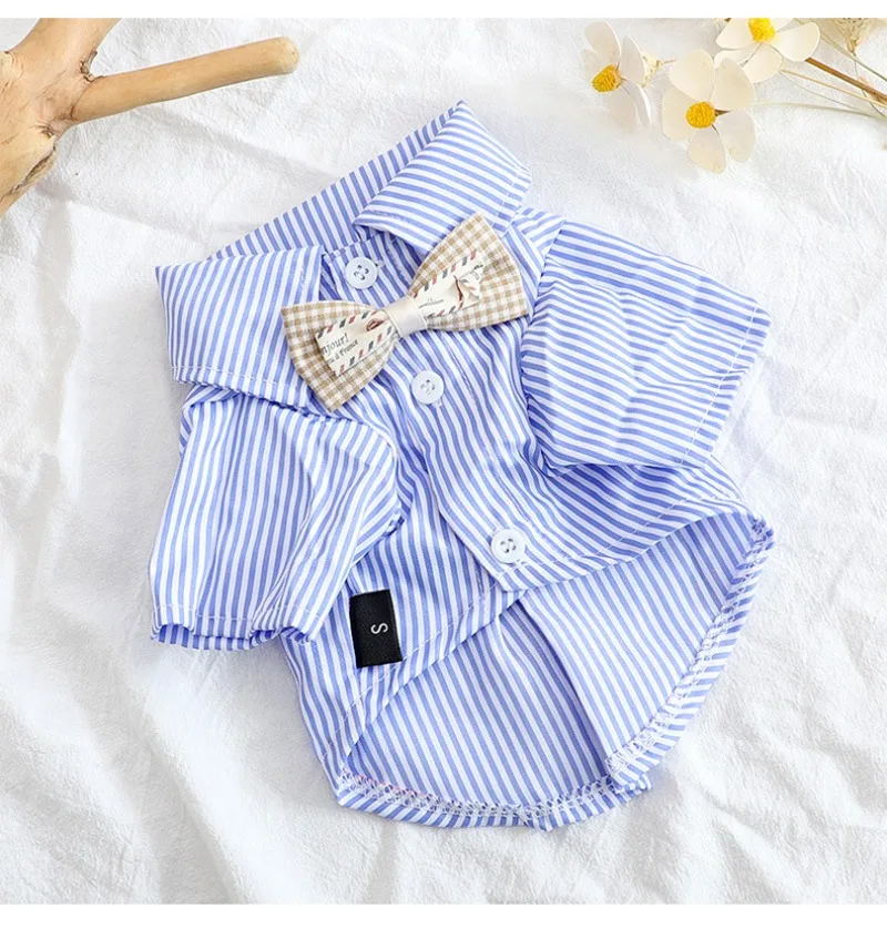 Ropa de moda para perros, camisas a rayas con lazo para gatos y perros, ropa de Cosplay, disfraz fino de verano para mascotas, suministros para mascotas Chihuahua