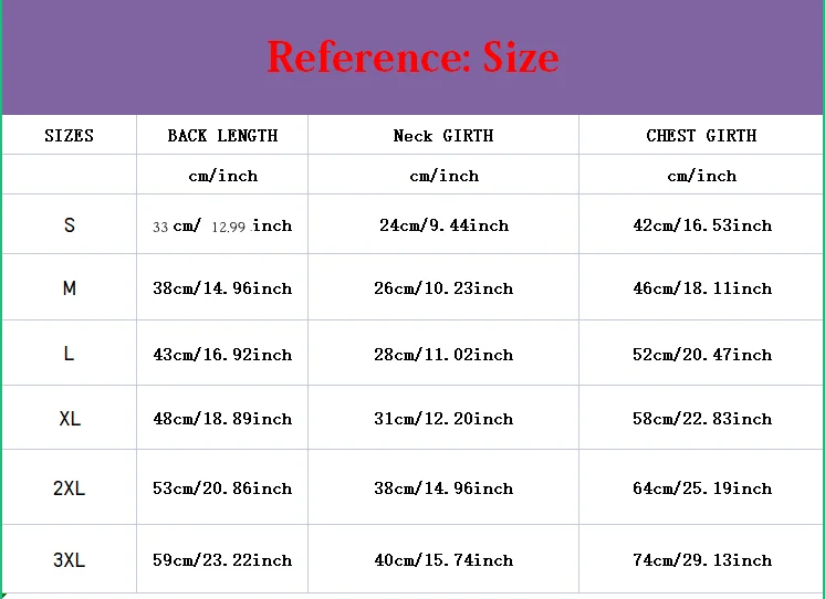 Nota: mida el tamaño del cuerpo de su mascota antes de comprar el producto para encontrar la ropa más adecuada.No puedes confiar en tu edad para juzgar el tamaño de tu mascota, lo que te hará comprar el tamaño equivocado.