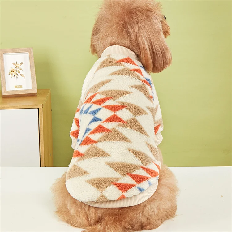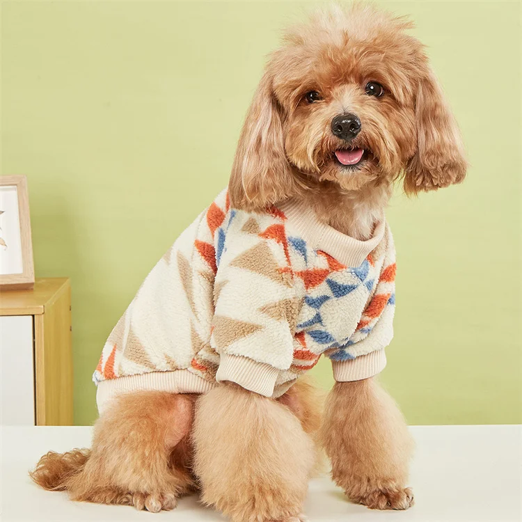 Ropa de moda para perros, suéteres de felpa con patrones geométricos Retro bonitos, ropa para perros pequeños y medianos, otoño e invierno