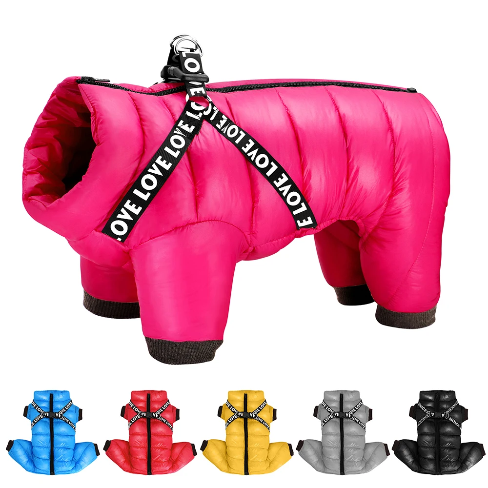 Ropa de invierno para perros, chaqueta súper cálida para perros, abrigo con arnés, ropa impermeable para cachorros, sudaderas con capucha para perros pequeños y medianos, traje