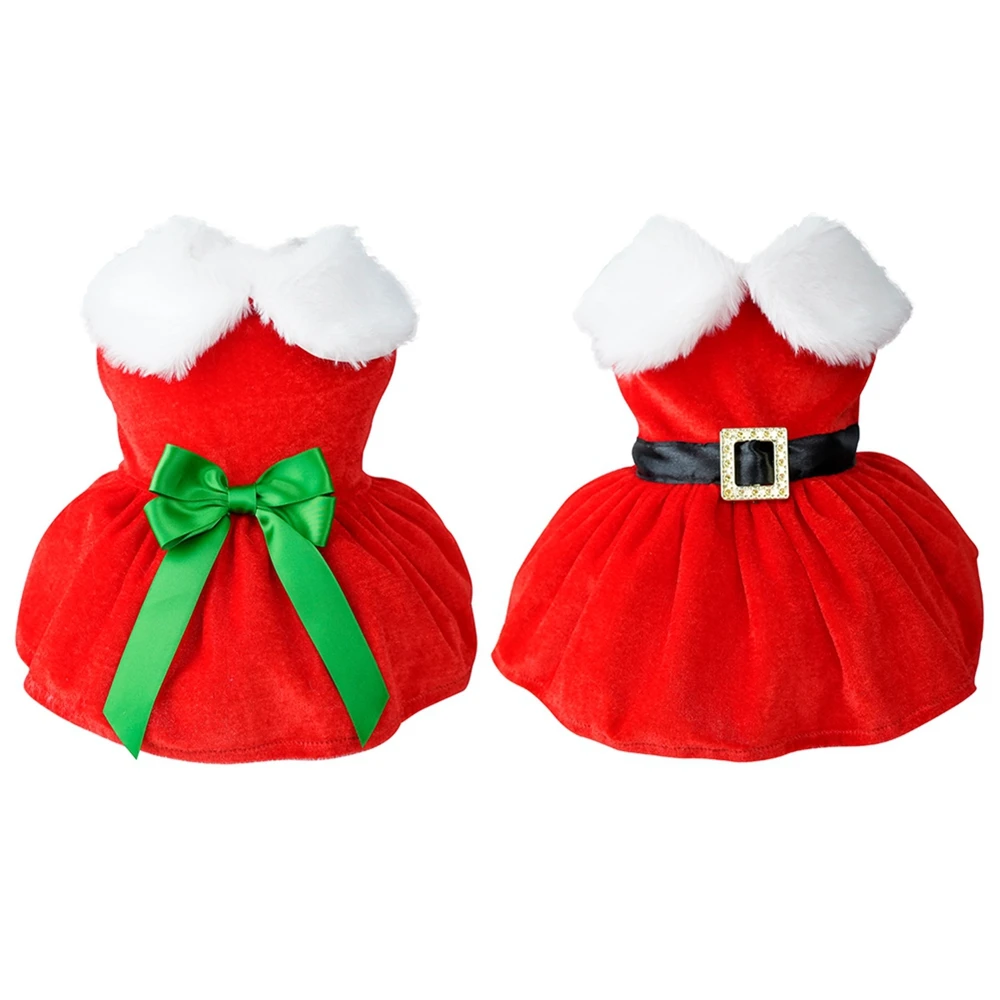 2 material duradero: el traje de vestido de Navidad para perros pequeños está hecho de mezcla de tela, suave y cómodo de tocar y llevar, la tela Interior tiene un diseño de tela ligera,. Ropa para perros pequeños el material para niñas es suave y ligero. El vestido tiene un diseño transpirable, ligero y pulóver, fácil de poner y quitar.