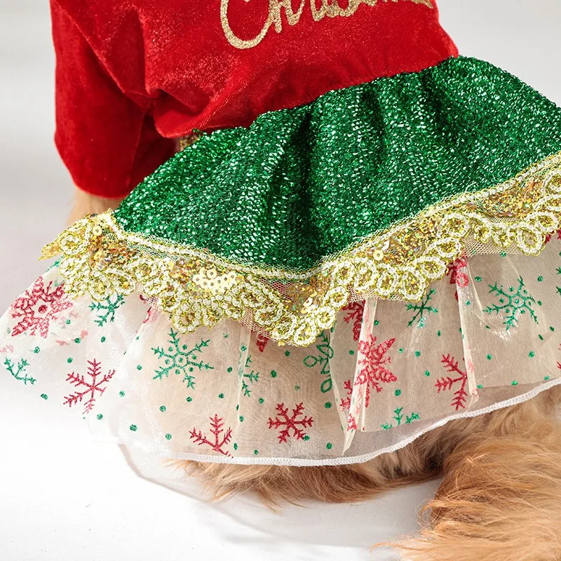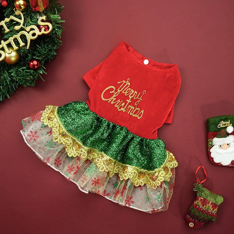 Ropa de Navidad para perros, falda de terciopelo dorado con lentejuelas coloridas para mascotas pequeñas, gatos y perros, ropa para cachorros