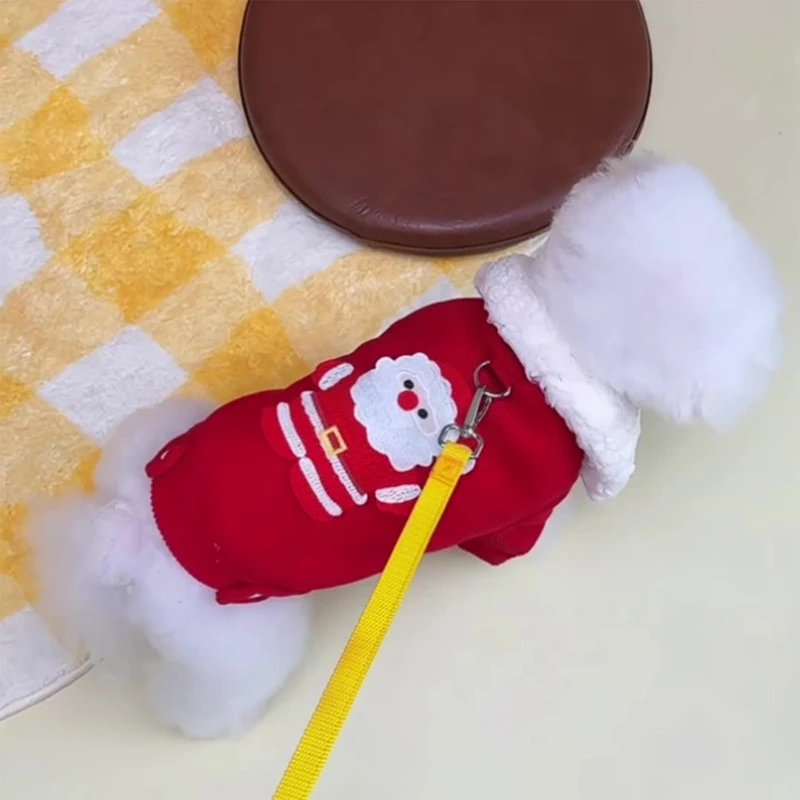 Red Old Man - Christmas Clothes Corduroy Thickened Warm Cotton Clothes Small Dog Teddy Bichon Frise Towable Pet Dog Clothing