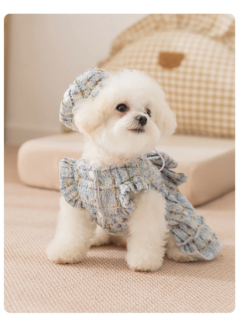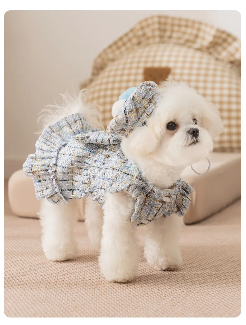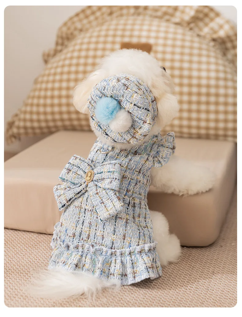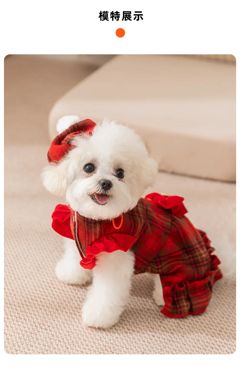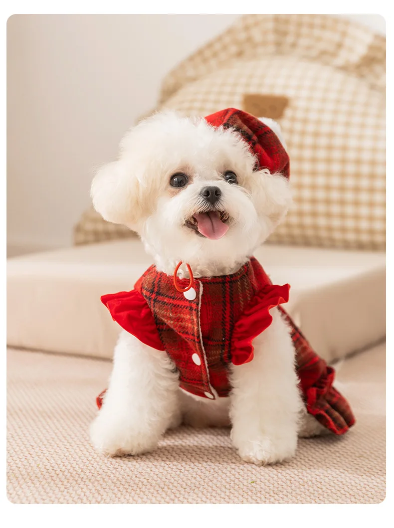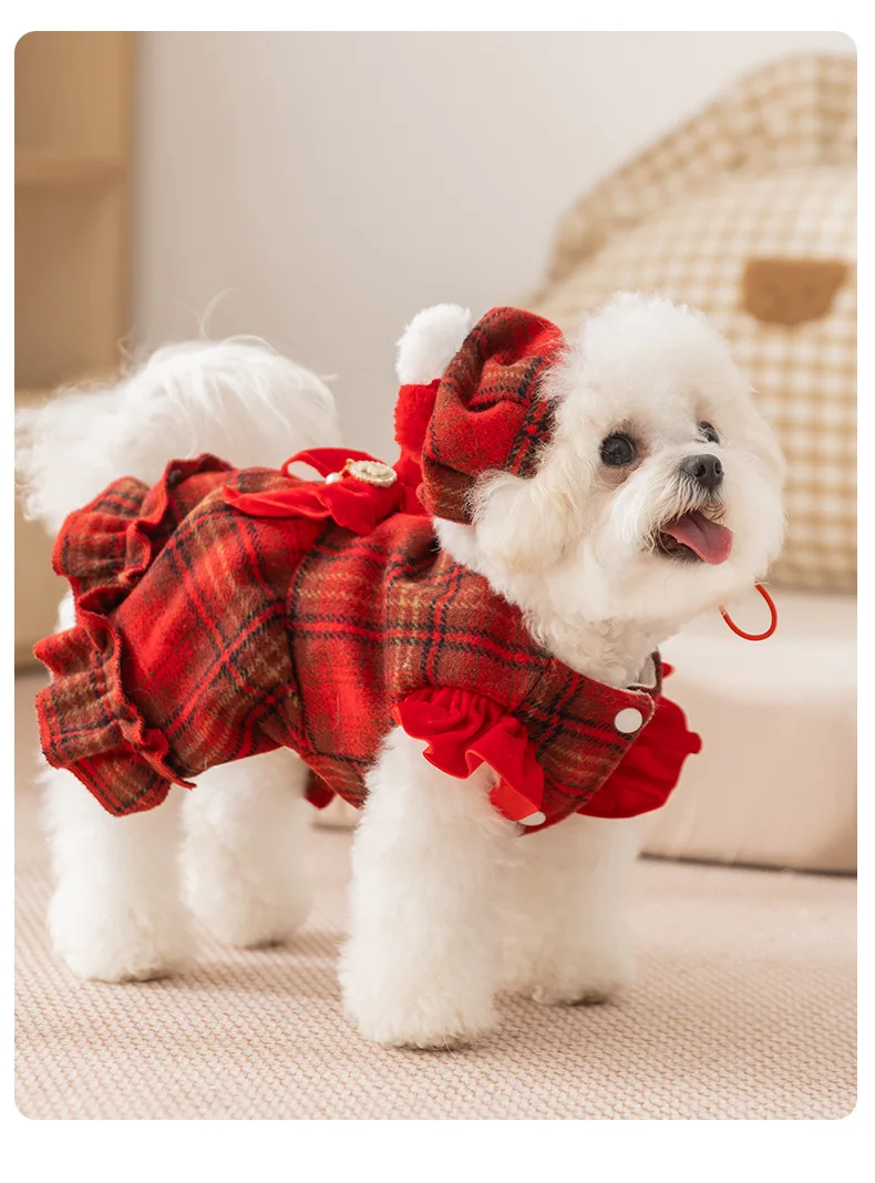 Ropa navideña de invierno para perros, vestido con arnés con capucha y lazo rojo para perros pequeños, Año Nuevo festivo para Bichon