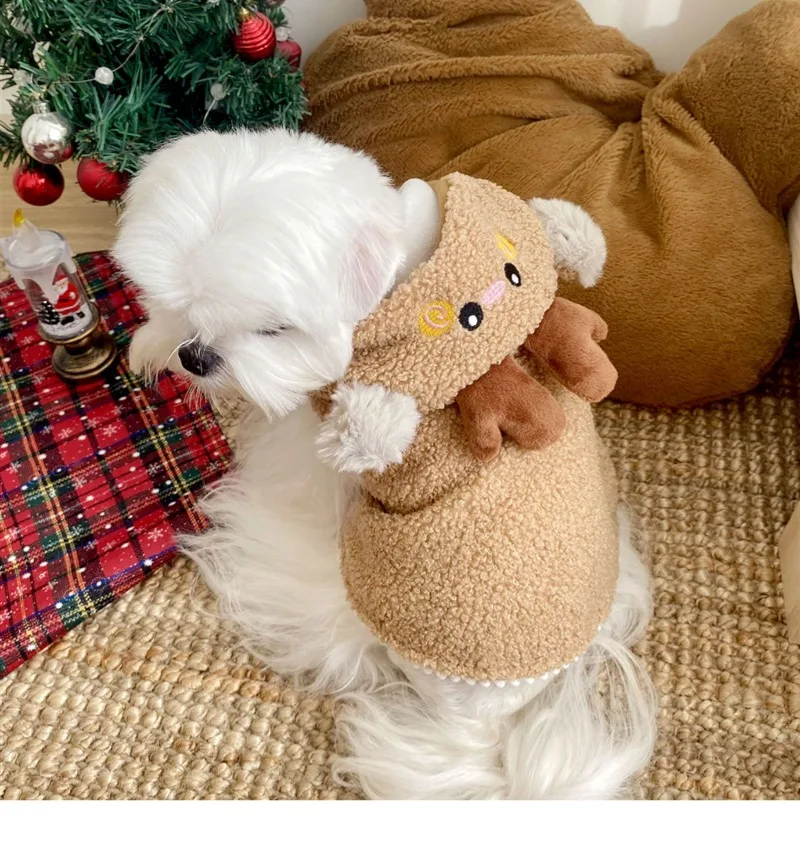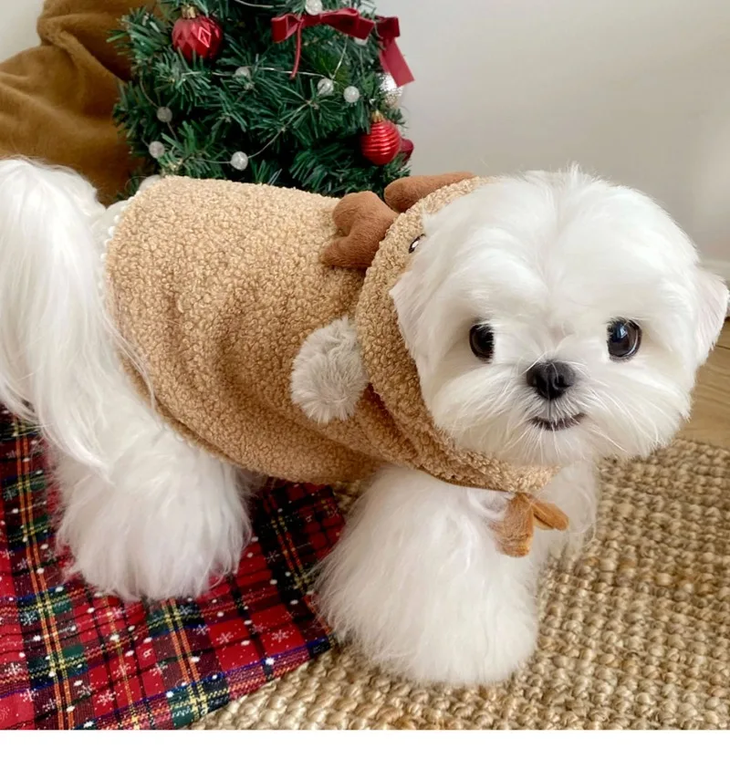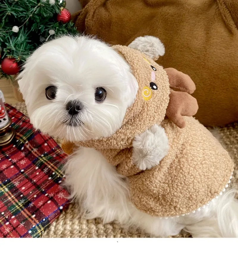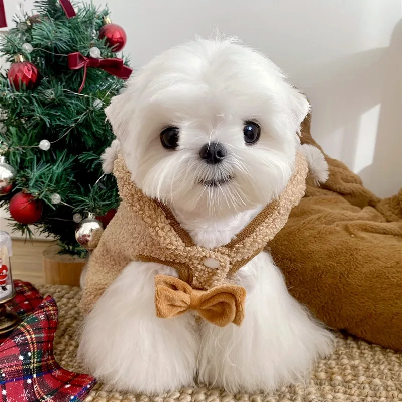 Ropa navideña para mascotas, chaqueta marrón para perros, capa navideña para perros, Yorkshire, ropa cálida de invierno, pijamas populares Bichon, albornoces