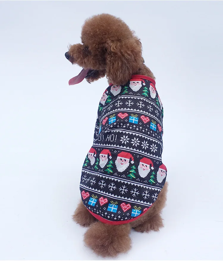 Diseños creativos: nuestra ropa para perros está diseñada con patrones clásicos de Navidad, incluidos Papá Noel, árbol de Navidad, niño de pan de jengibre, muñeco de nieve, dulces, etc., lo que puede agregar un ambiente navideño.