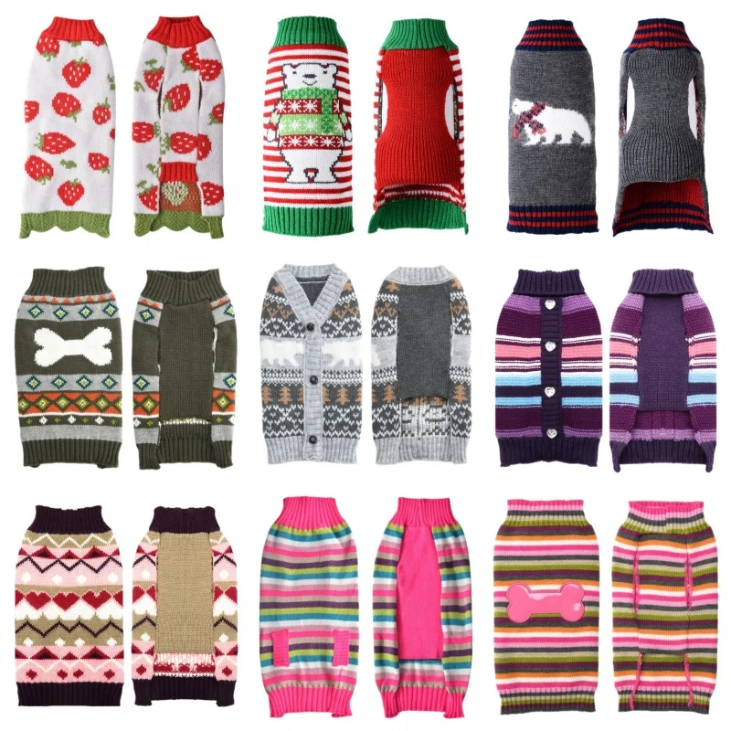 Ropa navideña para perros, suéter para perros pequeños, estampado bonito para cachorros, cuello alto de punto, suéter de lujo para gatos, trajes para perros Schnauzer