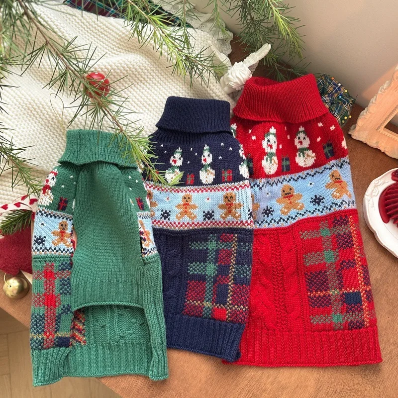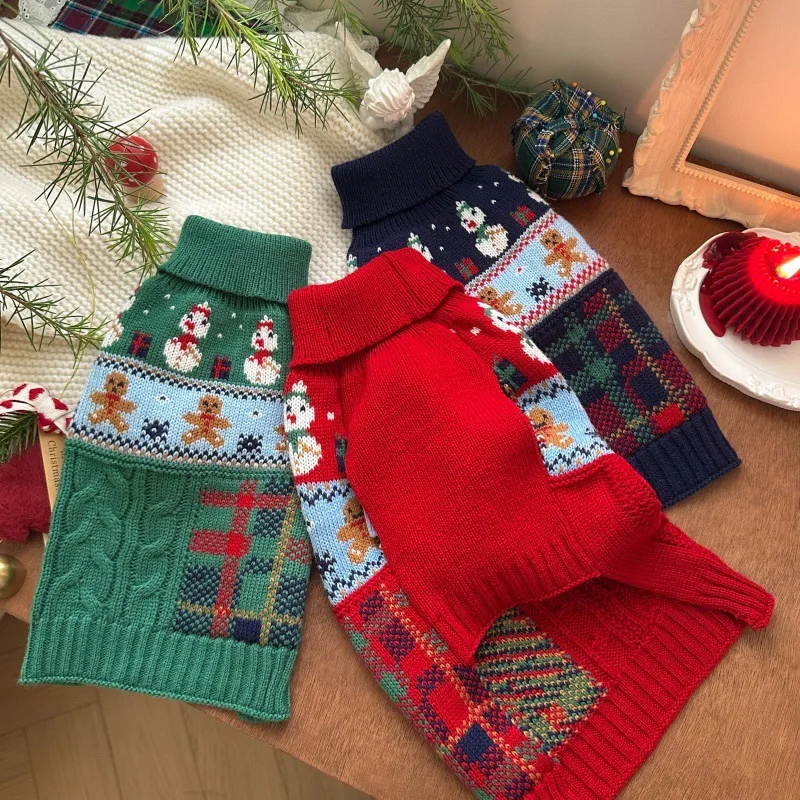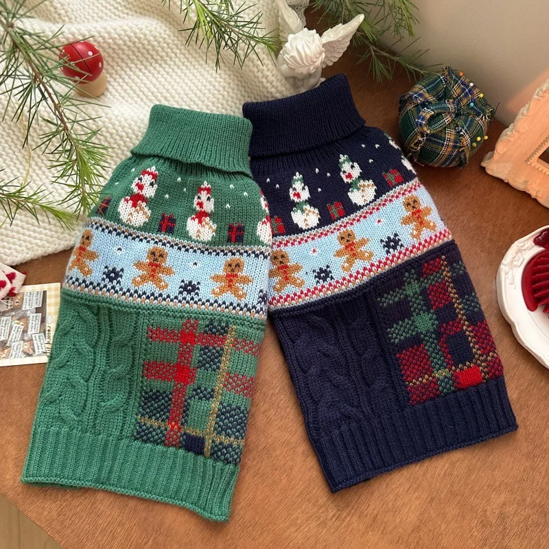 Ropa navideña de punto para perros, suéter de muñeco de nieve para mascotas, ropa cálida de invierno de Pomerania, jersey de dibujos animados de peluche, chaquetas para cachorros