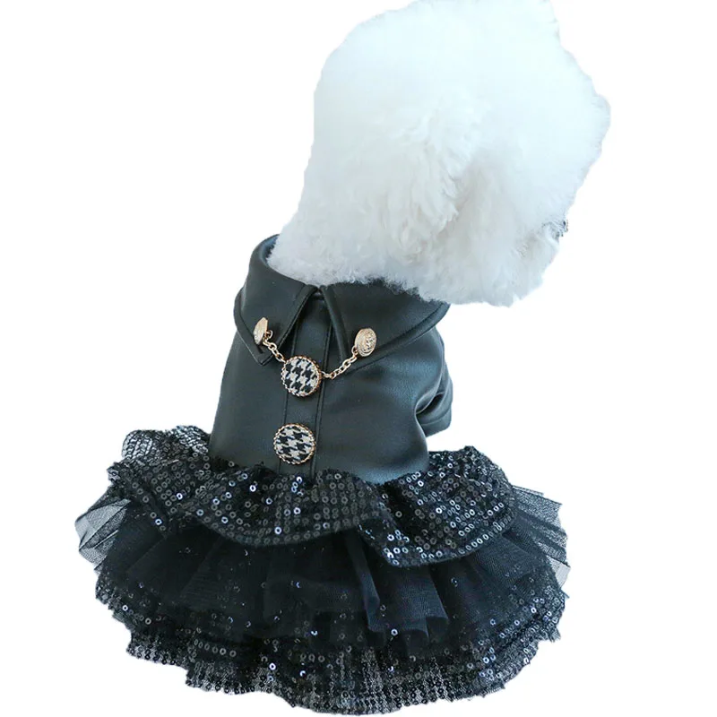 Ropa de PU para mascotas, abrigo interior de lana de lujo de cuero negro para perros, abrigo de invierno para perros pequeños, falda de tul con lentejuelas, abrigos para cachorros, chaquetas, ropa