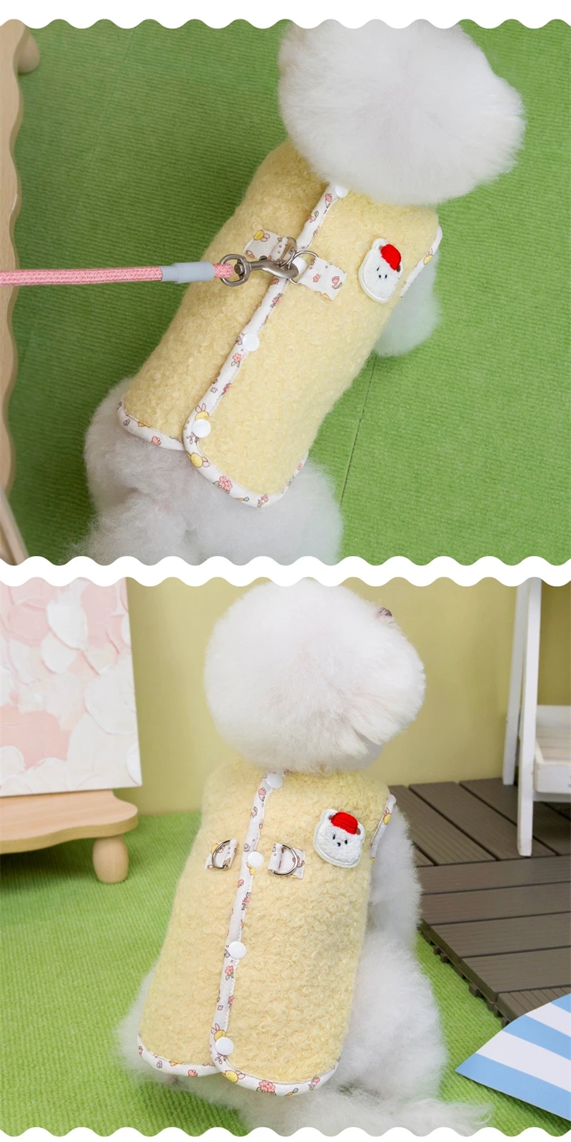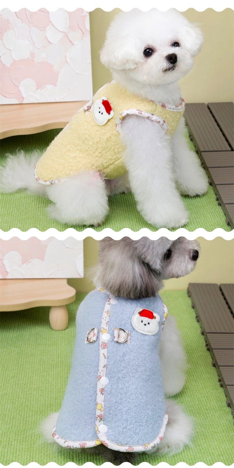 Ropa de oso de peluche de terciopelo para perros pequeños, oso de dibujos animados decorado, monos de invierno sin mangas para gatos, chaquetas bonitas para gatitos Chihuahua