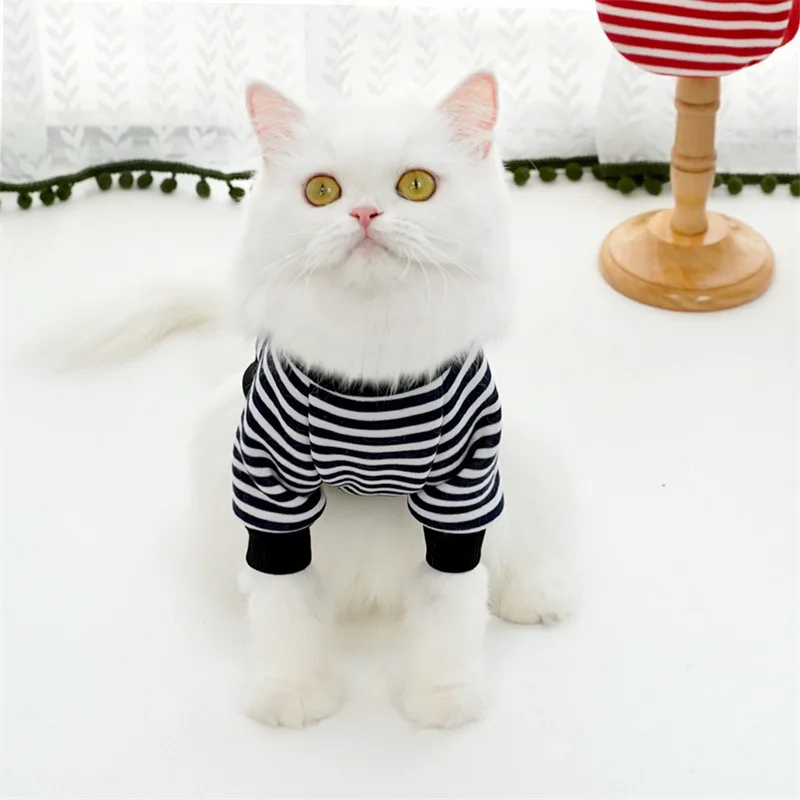 Ropa de otoño e invierno para gatos, sudaderas con capucha a rayas para perros y gatos, jersey con forro polar para cachorros, sudadera para perros pequeños, gatos, mascotas Aaaprel