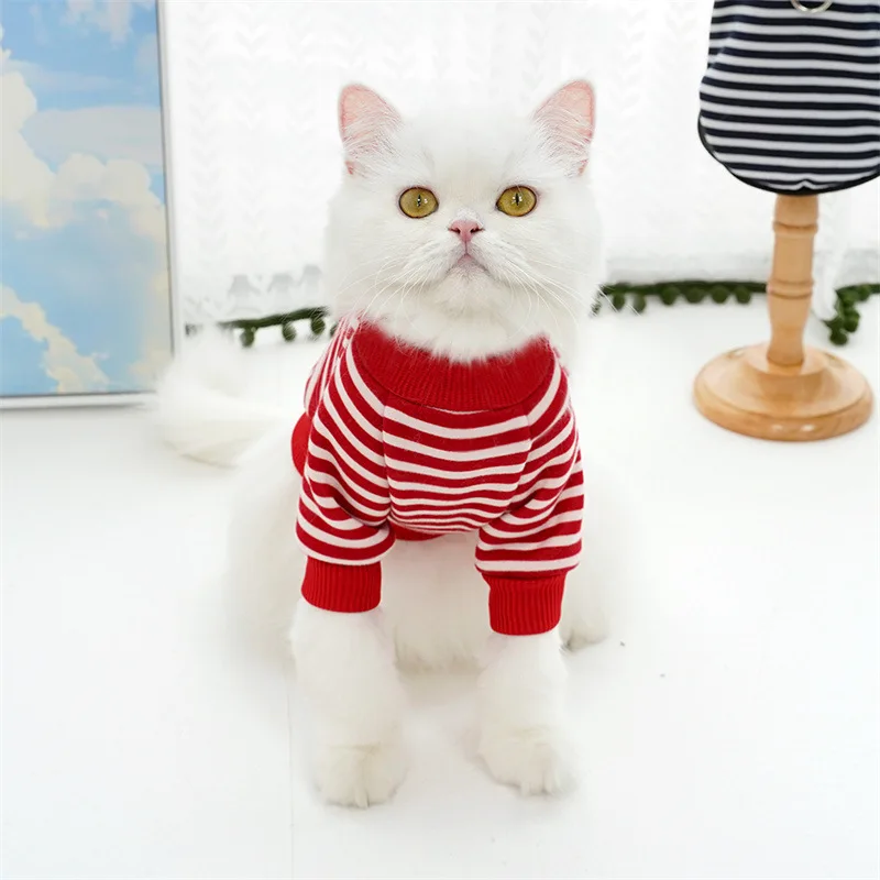 Chaleco a rayas de otoño e invierno para mascotas, chaleco con lazo grueso cálido para gatos, ropa para perros pequeños, ropa para cachorros