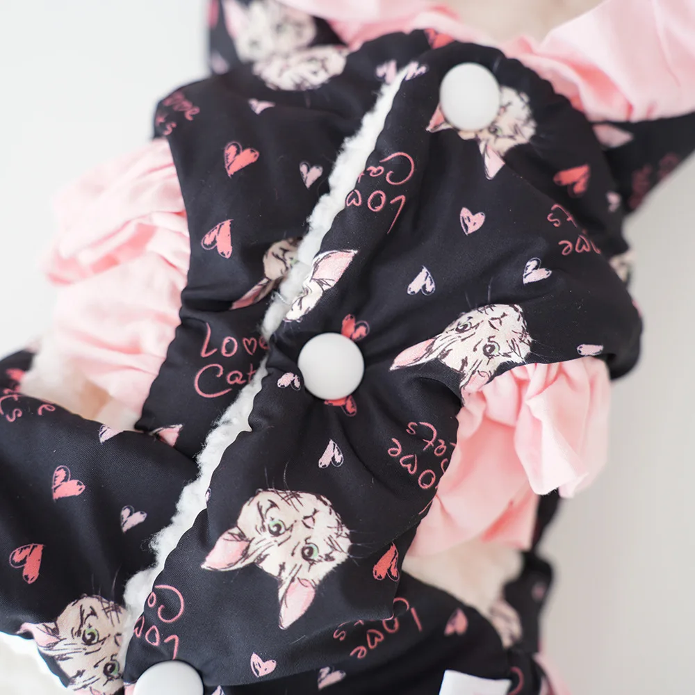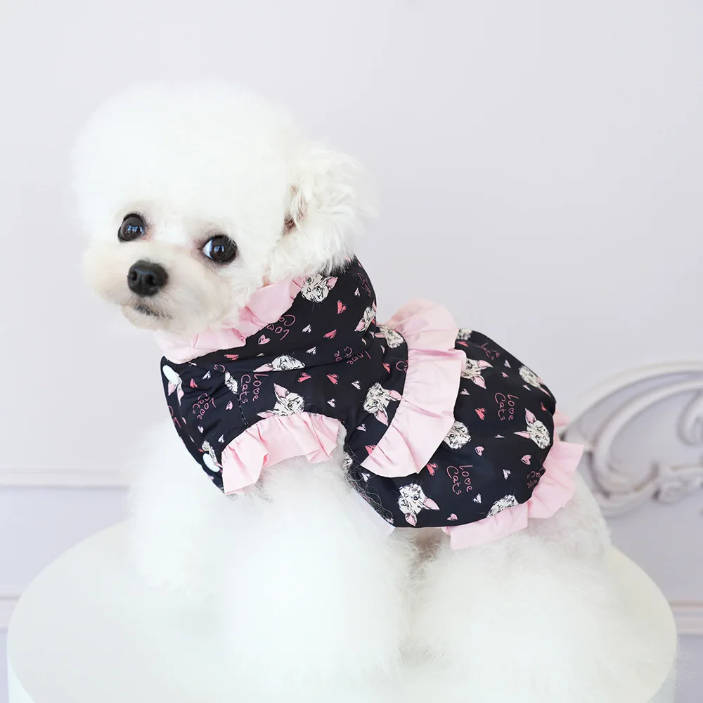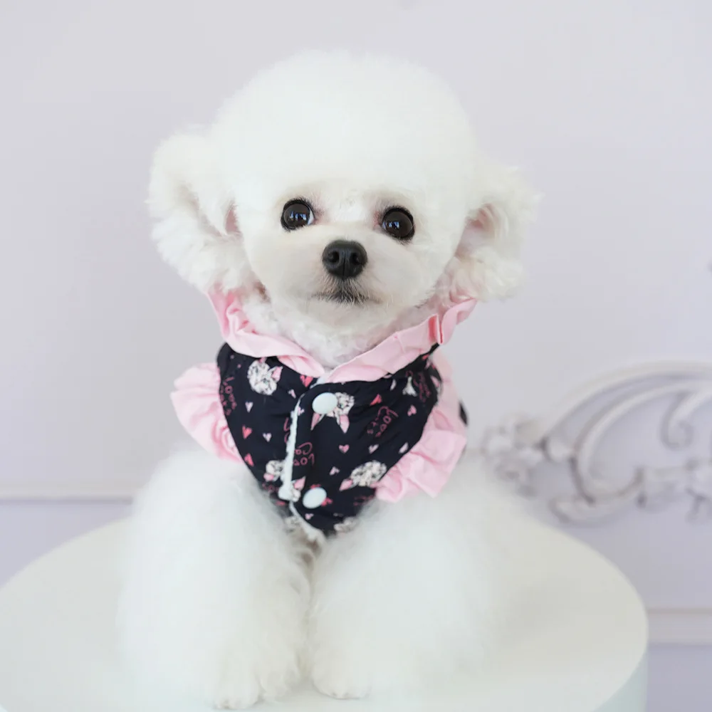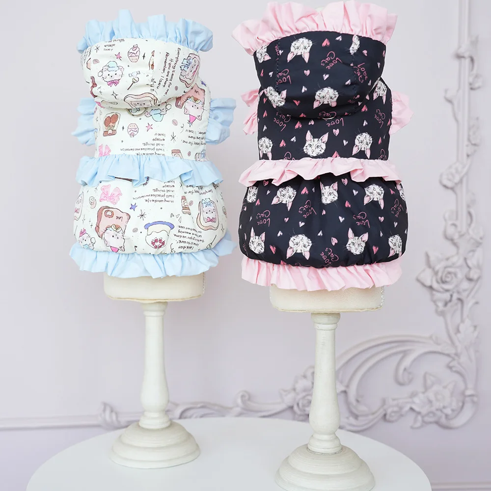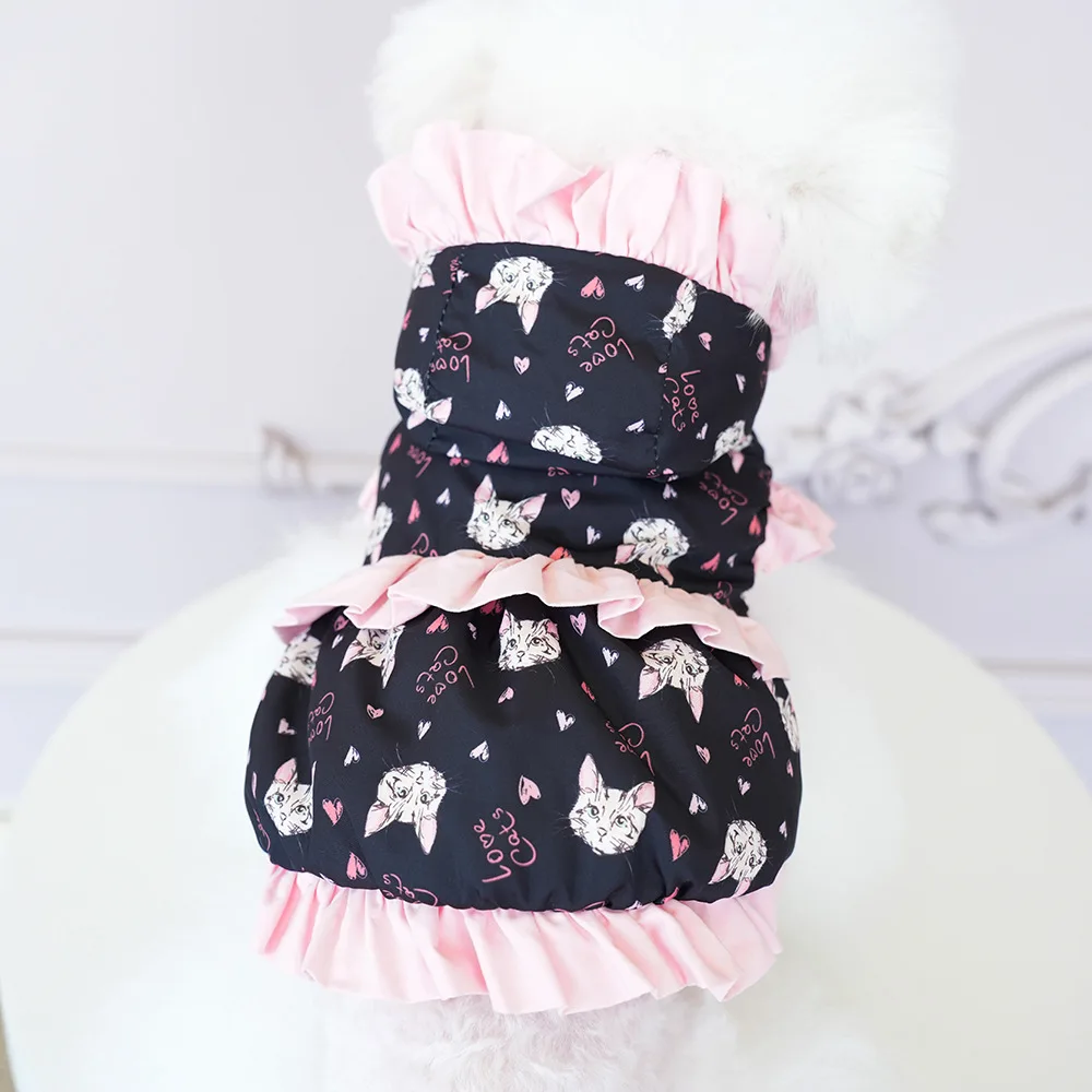 Ropa de otoño e invierno para mascotas con capucha, abrigo de encaje, vestido grueso, abrigo interior de felpa, ropa para perros pequeños, ropa para cachorros