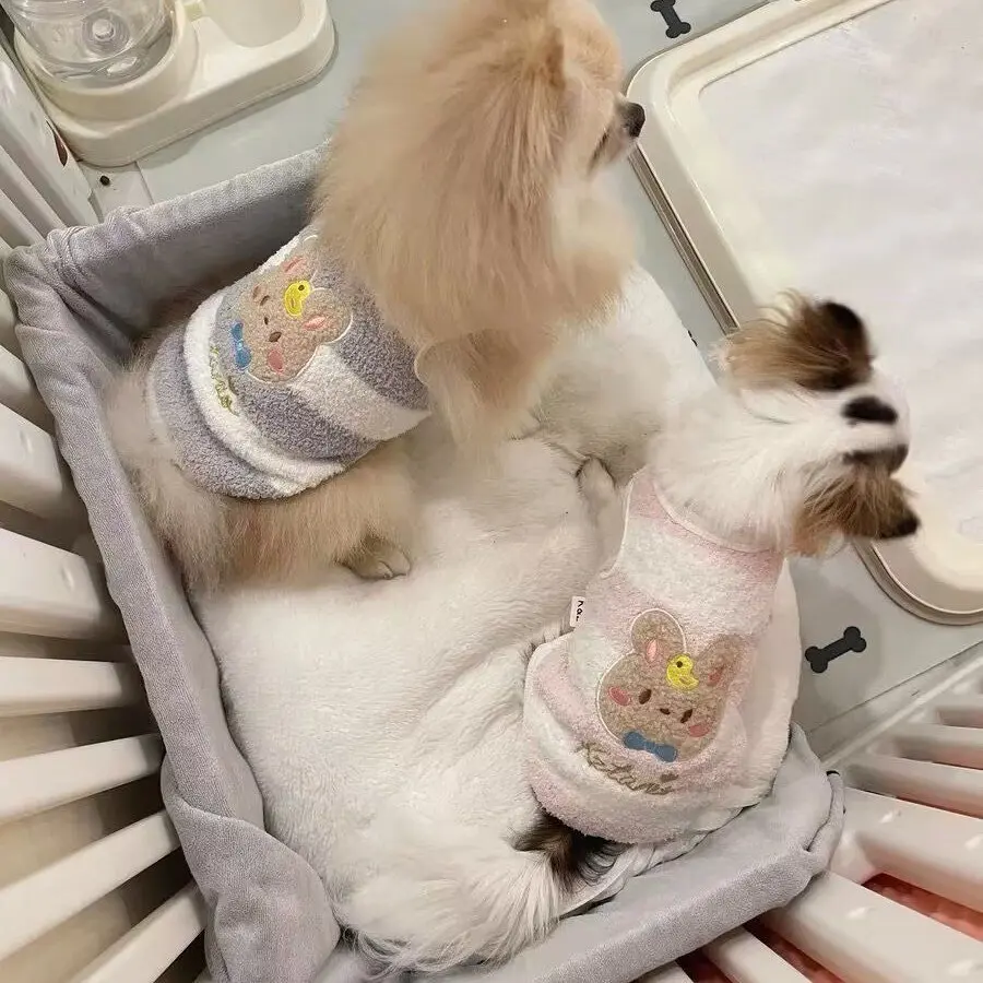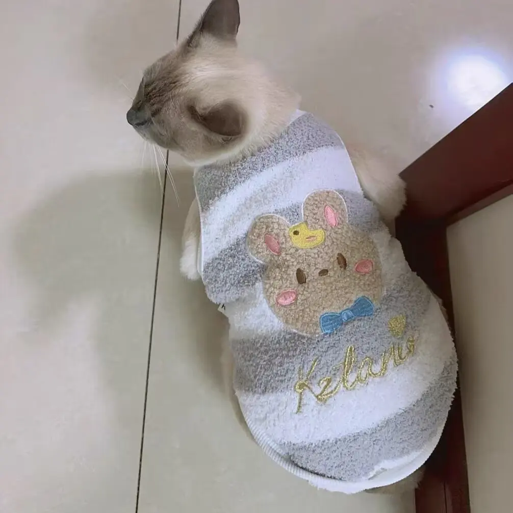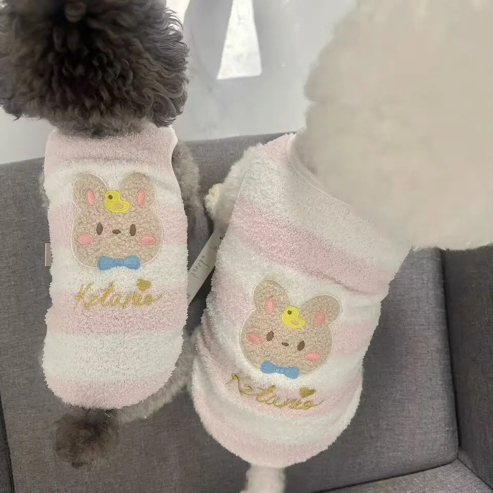 Ropa de otoño e invierno para mascotas, ropa de dos patas a rayas de conejito, bonito abrigo cálido, oso de peluche, gato, cachorro, ropa para perros pequeños