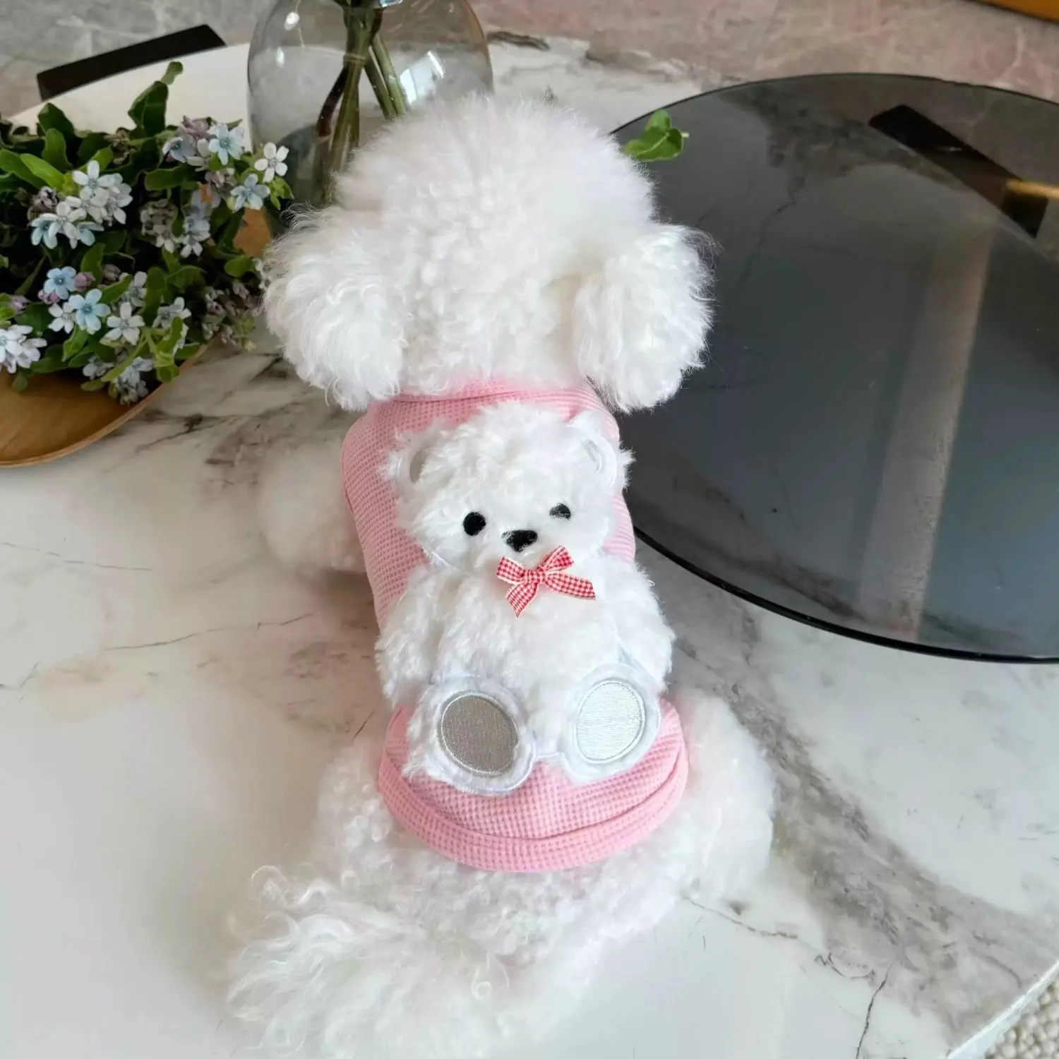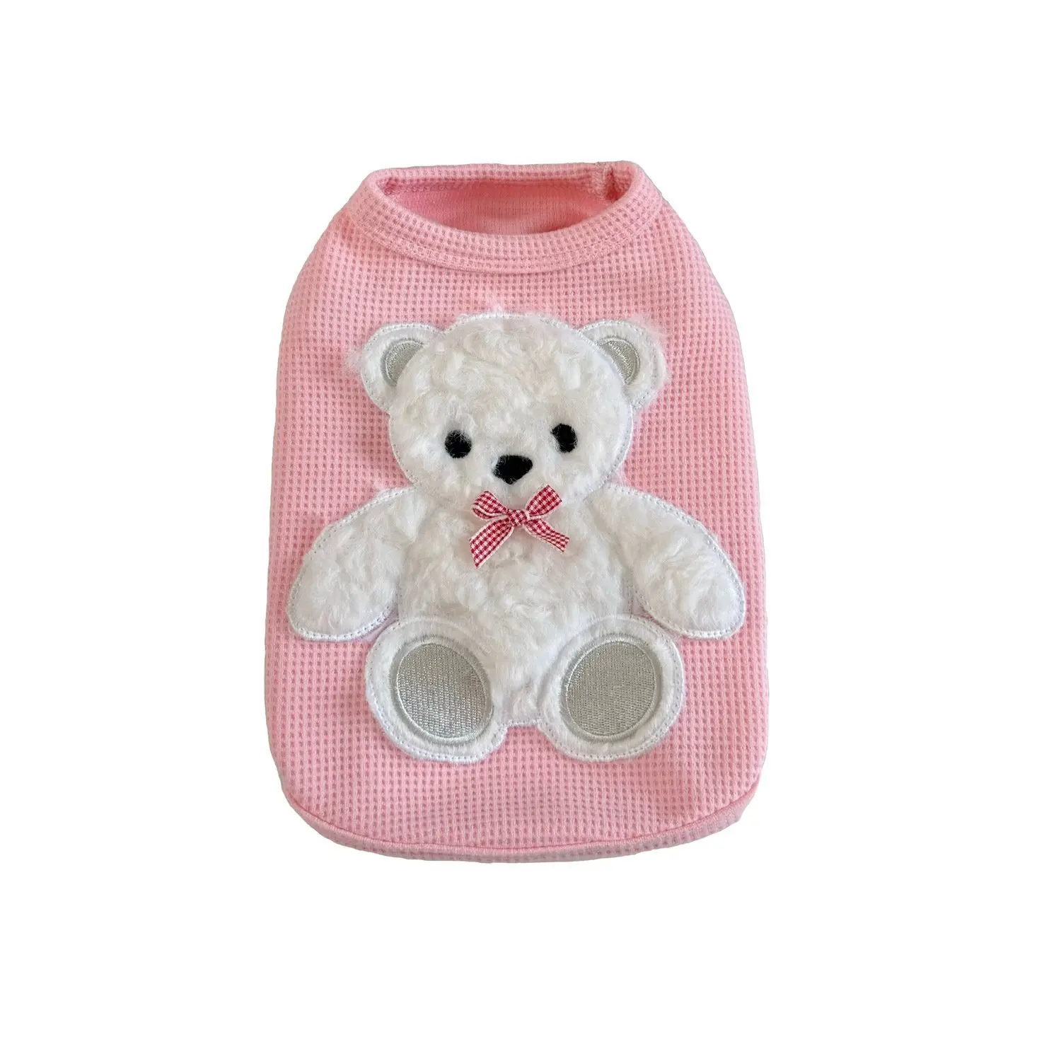 Ropa de otoño e invierno para mascotas, ropa de dos piernas tipo gofre, camiseta sin mangas bonita, camiseta sin mangas de oso de peluche, ropa cálida para cachorros y gatos