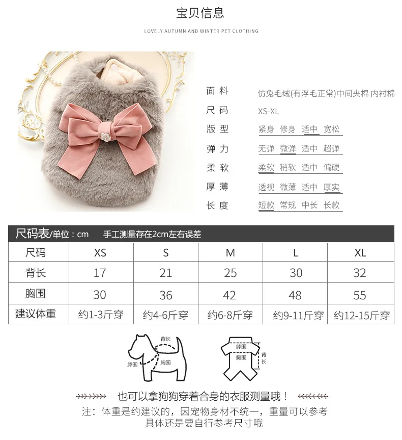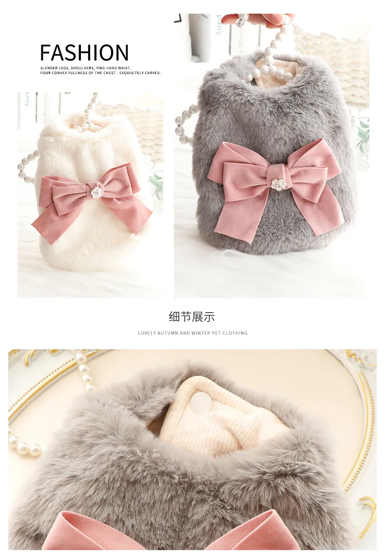 Ropa de otoño e invierno para mascotas, vestido de felpa, lazo de princesa de felpa, abrigo para perros pequeños, vestidos para perros pequeños, ropa para cachorros