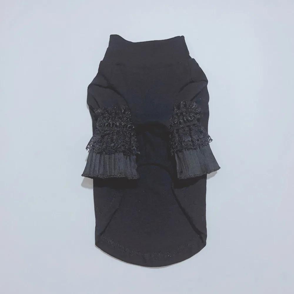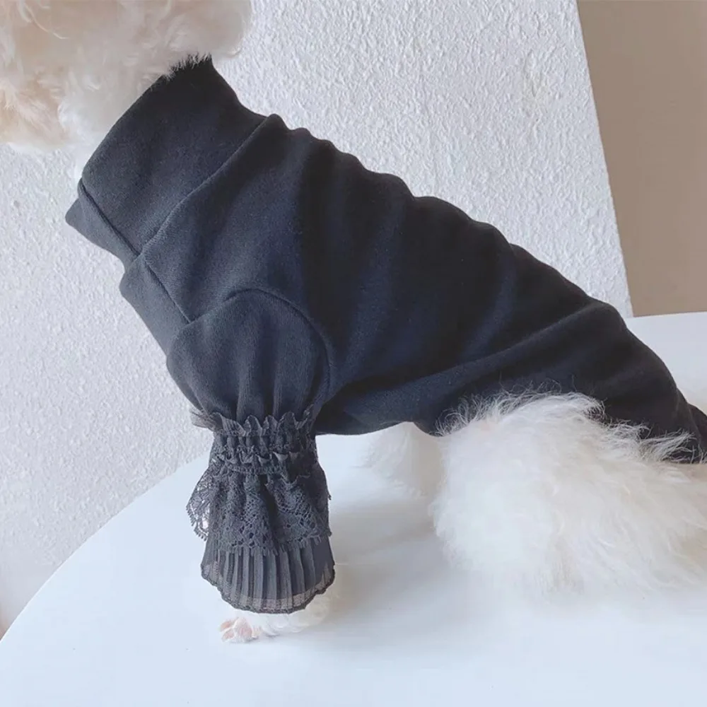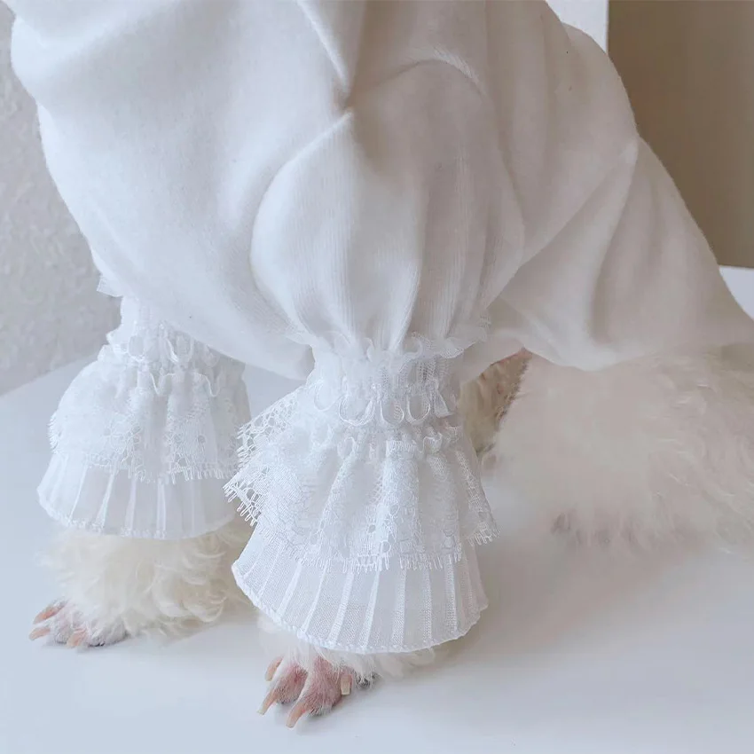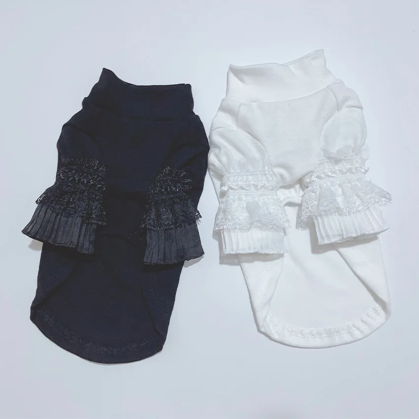 Ropa de otoño e invierno para perros, camisa Base blanca de manga larga de encaje, camiseta para perros con oso de peluche y gato, ropa para perros pequeños y cachorros