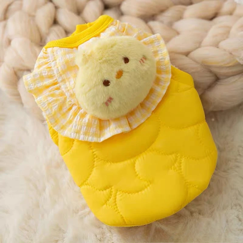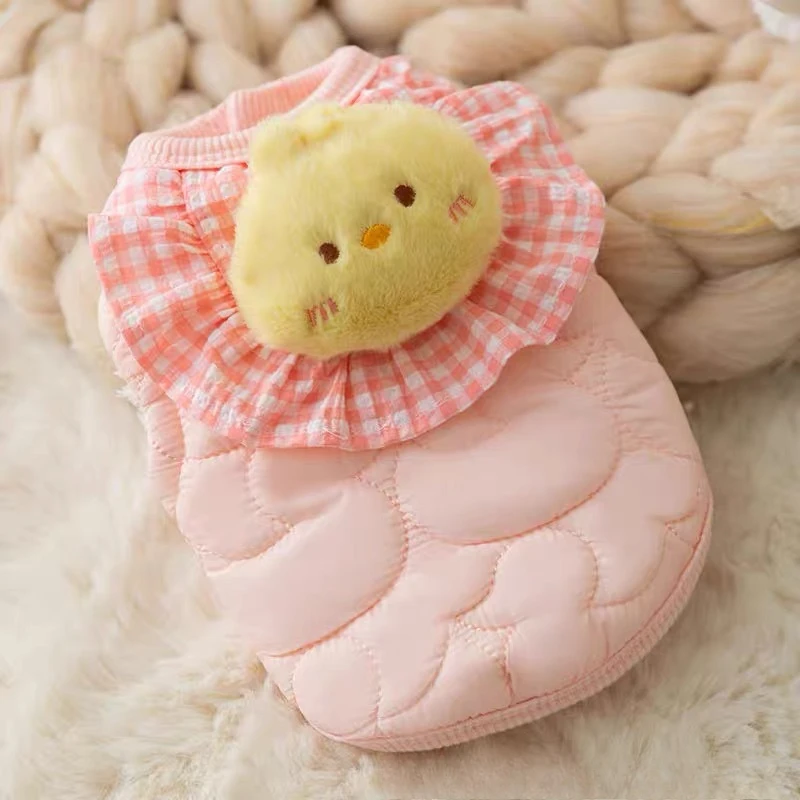 Ropa de pato de encaje a cuadros para mascotas, ropa para perros de otoño e invierno, oso de peluche, chaleco cálido para gatos, ropa para perros pequeños, ropa para cachorros