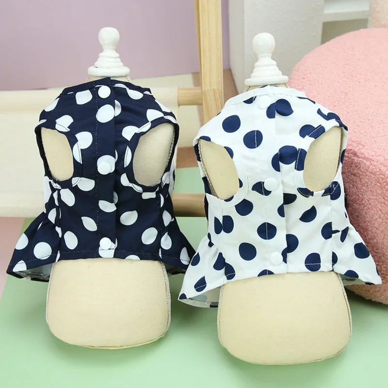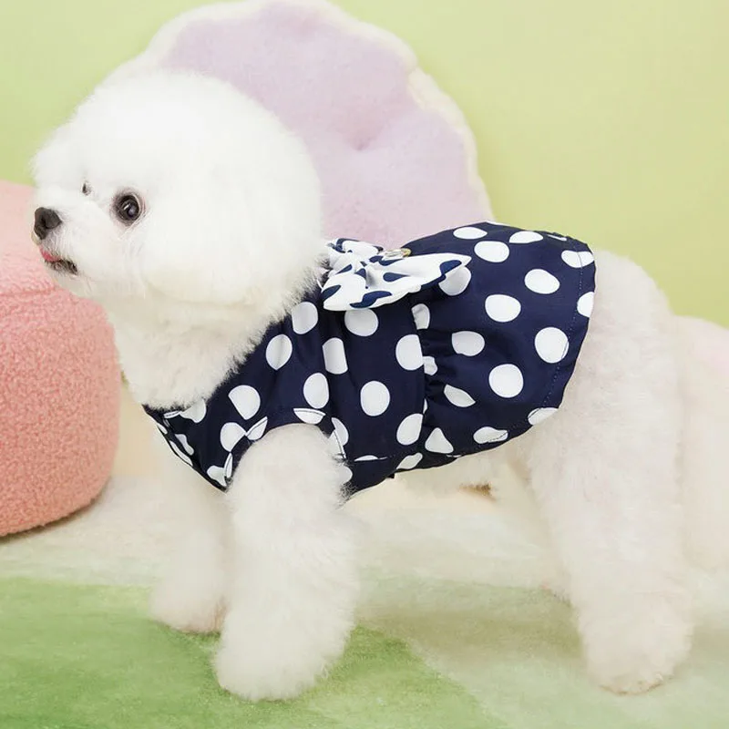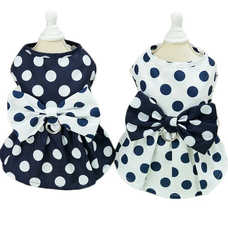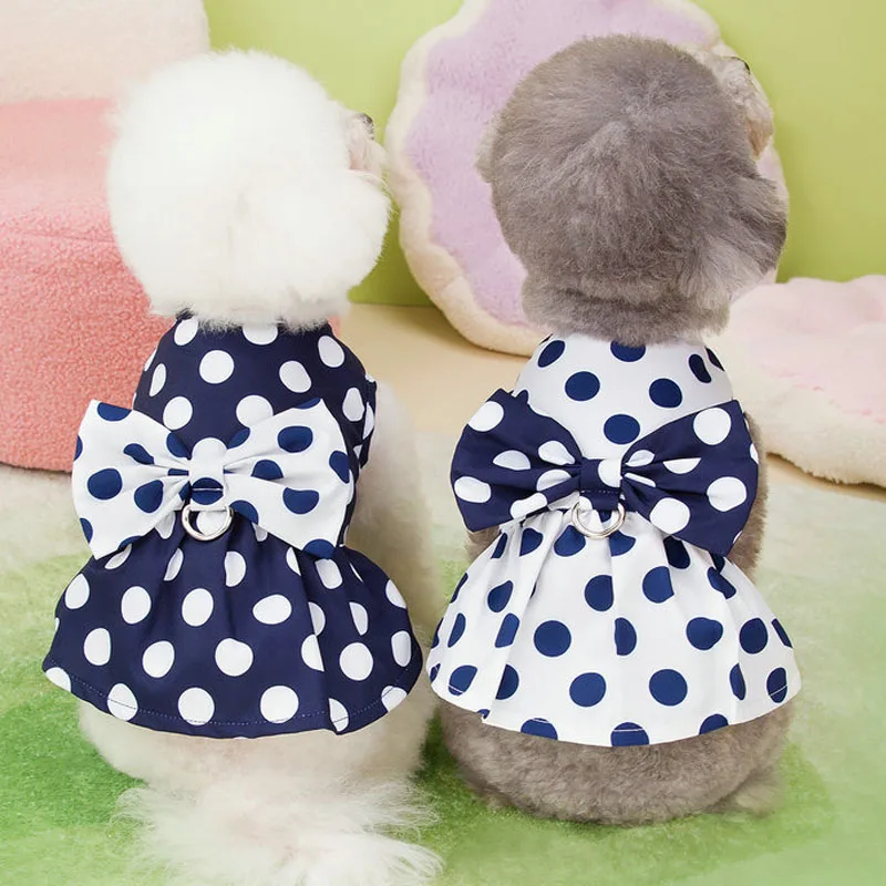 Ropa de perro para niñas con patrón de puntos, vestido cárdigan con lazo para cachorros pequeños, disfraces de caniche Chiwawawa, falda de fiesta de noche para perro gatito