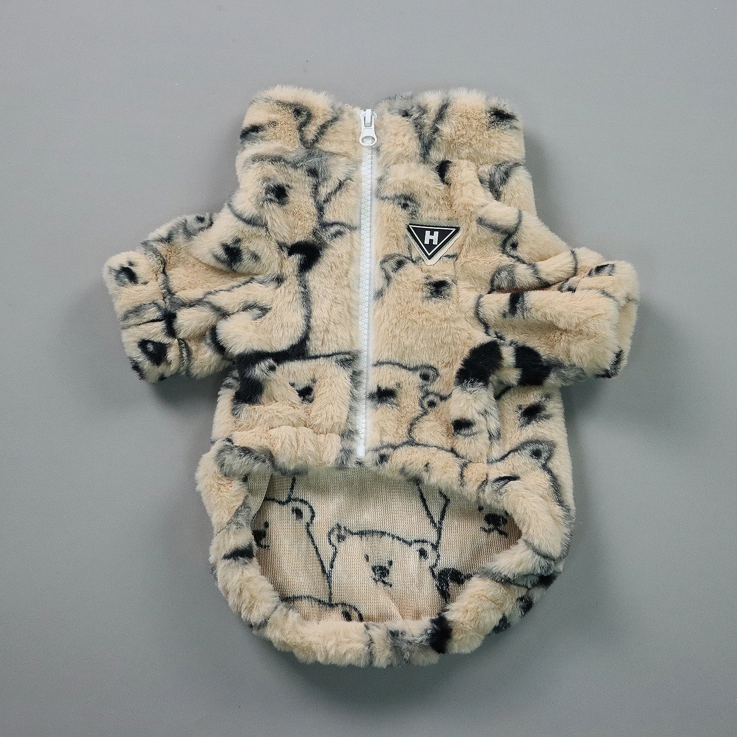 Ropa peluda para mascotas, abrigo para perros, gatos y cachorros, sudadera con patrón de osito, trajes cálidos para perros pequeños y medianos para otoño